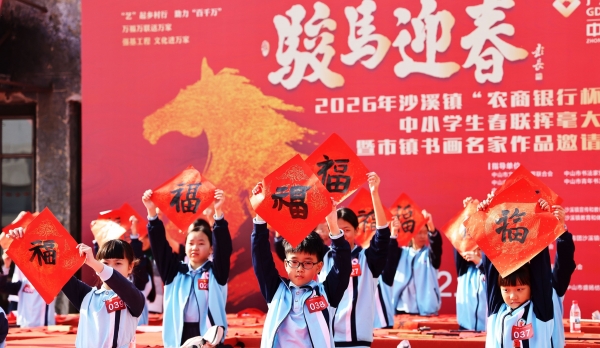 沙溪少年挥毫写春联,笔墨书香迎马年