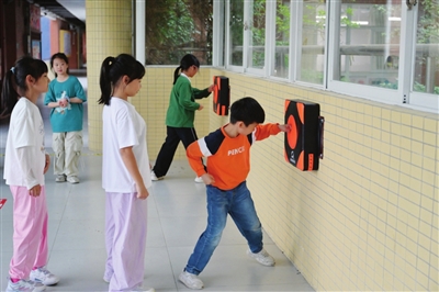 ▲朗晴小学的同学们在室外进行各项体育运动。记者 缪晓剑 摄