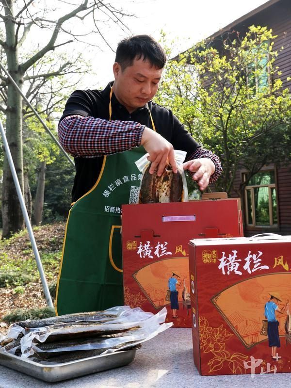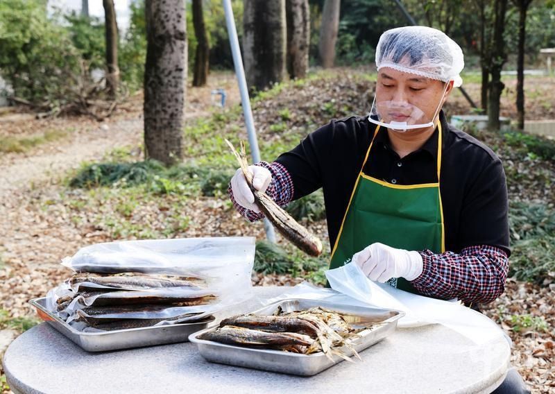 走进横栏镇低沥沙的一处鱼塘农庄,竹篱笆后藏着水乡冬日的热闹。沿河塘岸整齐排布的竹制晾晒架上,一串串处理利落的鲮鱼悬垂,在北风中轻轻晃动,阳光为鱼身镀上莹润光泽,咸香与草木气息交织弥漫。“对风鱼干来说,北风是‘天然调味师’——寒冷干燥的气候才能快速锁味干身,差一点天气,风味就偏了。”年轻非遗代表性传承人黄浩贤正和伙伴们给刚风干的鱼干装袋。