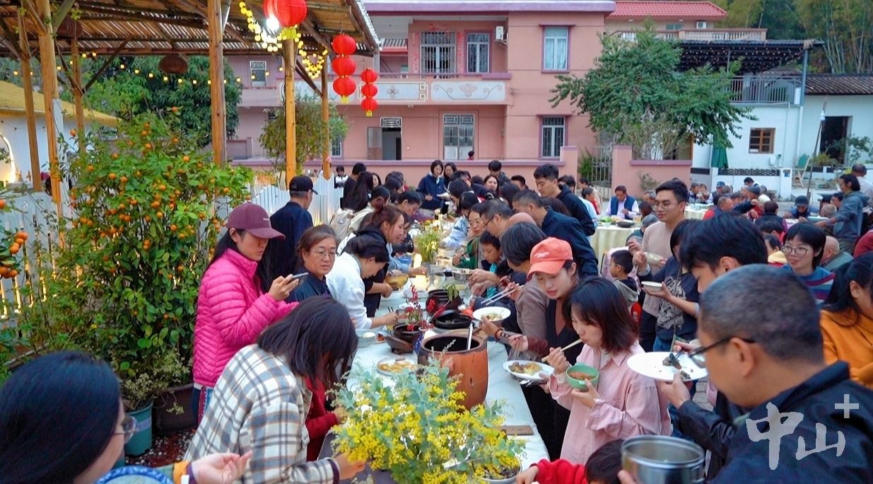 2月10日是北方传统的小年。当晚,在五桂山街道旗溪村,一场汇聚新老村民、中外旅客的大地餐桌活动如期举行。200余名参与者聚在一起,品南北美食、话乡村变迁,让这个网红村落在小年夜里愈发动人。