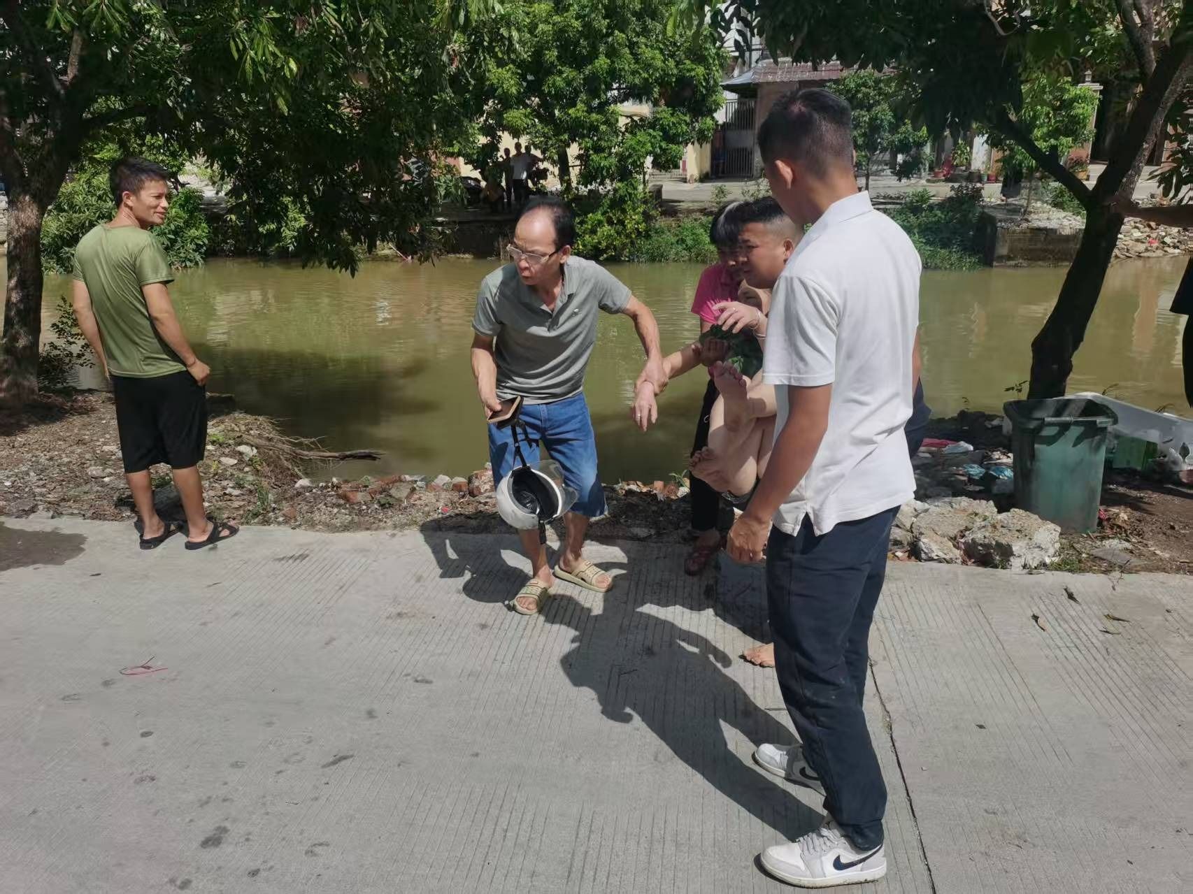 10月6日10时26分,一名50多岁的广西籍女士(租住在乌沙南路附近)驾驶电动车途经乌沙南路61号时,因刹车故障连人带车冲入乌沙涌。当时水流湍急,女子落水后挣扎着试图抓住岸边杂草,却被水流迅速冲向下游。其呼救声被水声淹没,情况危急。就在这时,回家路过的乌沙北路123号村民梁汉科(56岁)在门前发现河涌中的险情。“救人啊!快救人!”他立即朝二楼家中呼喊。