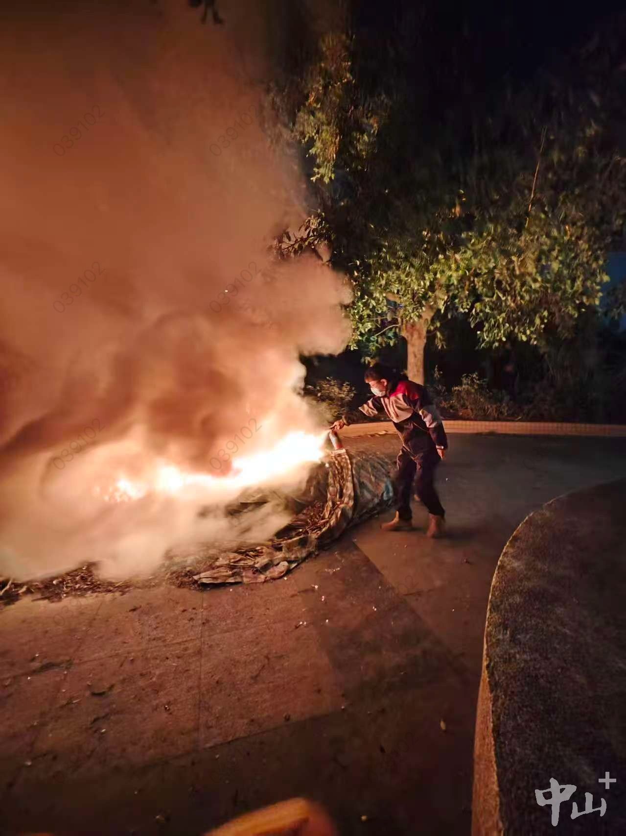 1月22日20时许,中山市坦洲镇科技路一巷突发火情,一棵大树意外燃烧,火势借风势迅速蔓延,树下堆放的塑胶布让火情加重,紧邻的住宅楼面临安全风险。途经此处的顺丰速运申堂营业店快递小哥黄能圳,用一场教科书式的应急处置,以平凡之躯守护了社区安全。