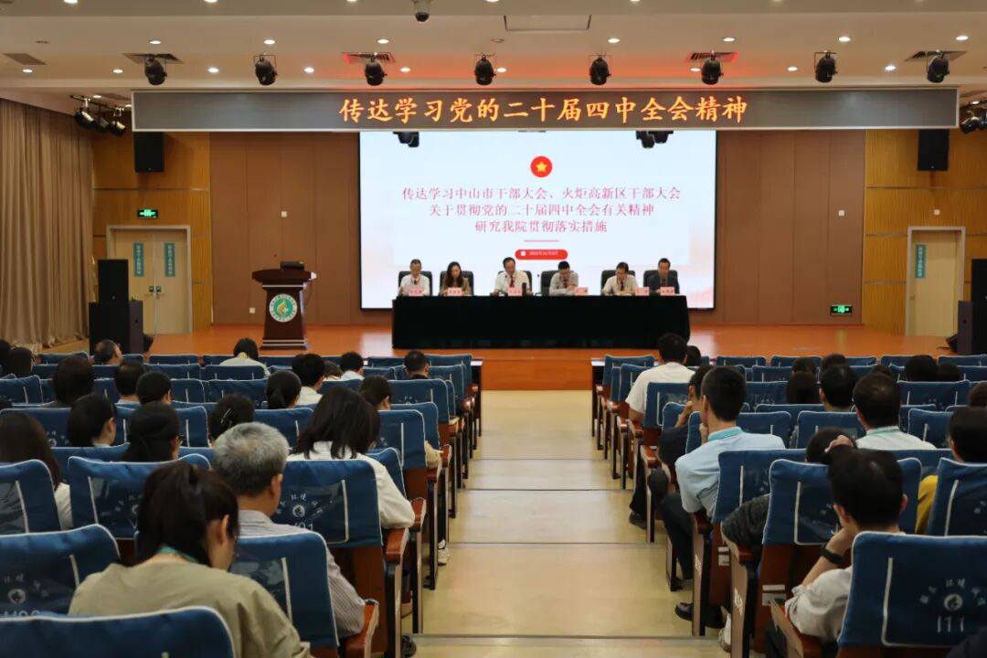 张洪涛传达了中山市及火炬高新区学习贯彻党的二十届四中全会精神干部大会的主要内容。