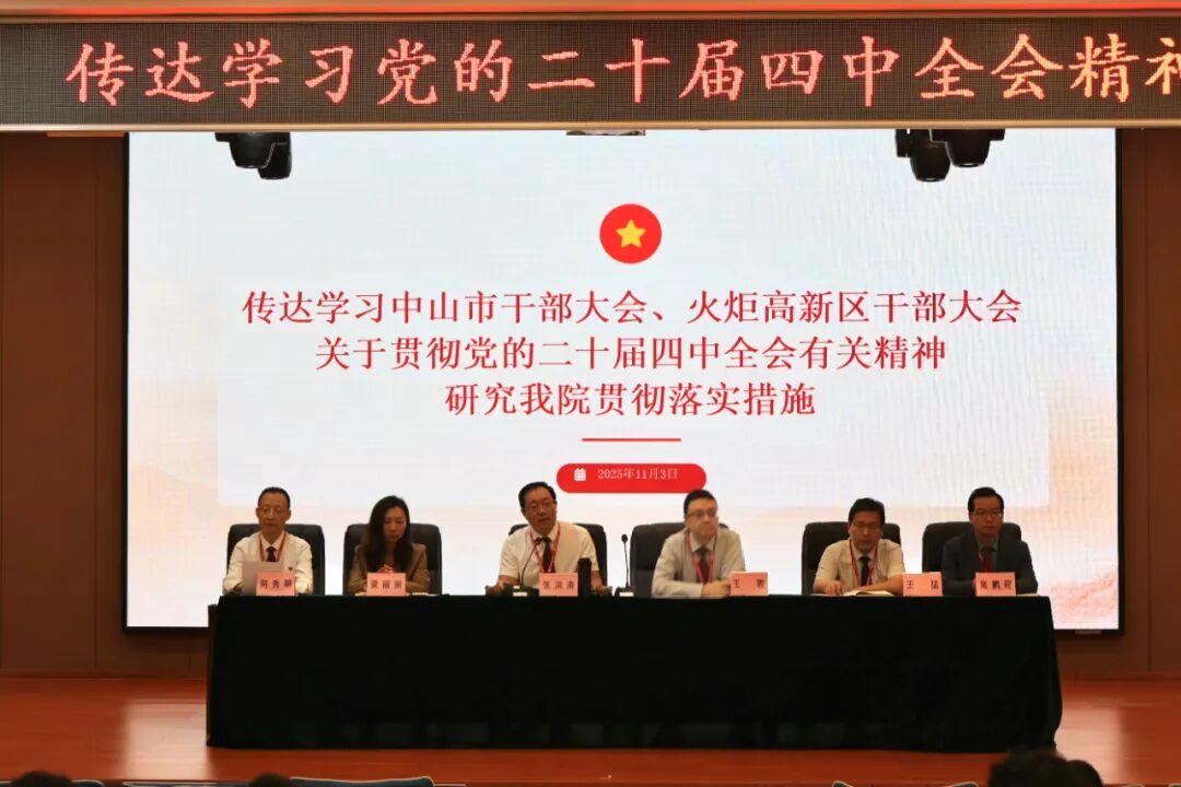 近日,中山市第六人民医院组织召开会议,传达学习贯彻党的二十届四中全会精神,贯彻落实中山市及火炬高新区干部大会部署要求,结合医院实际,研究制定具体落实举措,为“十五五”时期医院高质量发展谋篇布局、把舵定向。医院党委副书记、院长张洪涛主持会议并讲话,医院其他领导班子成员、全体党员同志、全体职能部门人员参加会议。
