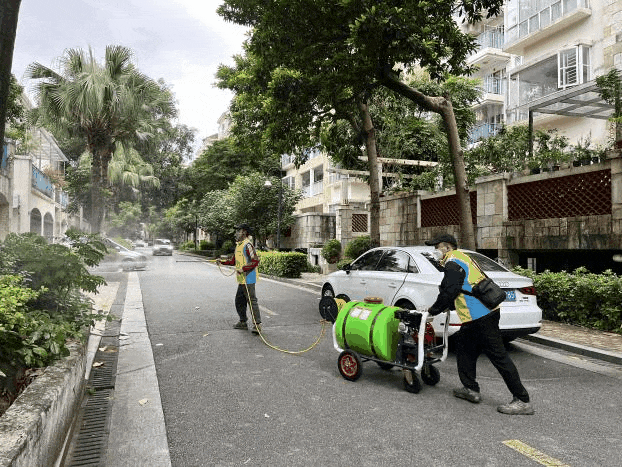 为进一步强化防控效果,五桂山街道第一时间召集青年志愿者组建青年消杀突击队。突击队员们携带专业消杀设备,定期对辖区村道、居民小区公共区域、绿化带草丛等蚊虫易孳生区域进行全面药水喷洒,同时清理卫生死角,最大限度降低蚊虫密度。