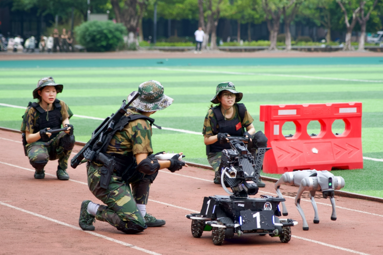 同时,“机器狗”还现身演示伴随进攻、侦察进攻等,让学子们感受科技的力量,展现军训中的“大片”。