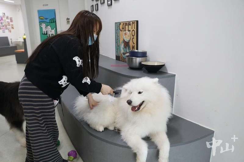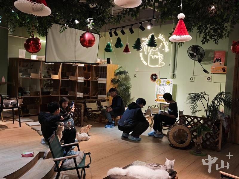 “二十,过来。”午后暖阳下,“猫三咖啡”店主林嘉俊一把抱起名为“二十”的金毛串土狗,轻抚着它的毛发;懒猫猫咖里,店员张先生正用湿巾为一只猫咪轻轻擦拭眼角,猫咪舒展身体,一派安然。近年来,既能享受餐饮,又能与宠物互动的消费场所在中山城区悄然兴起。花上不到50元,便可拥有一段被“毛孩子”陪伴的松弛时光。连日来,记者走访了城区多家宠物主题体验店,发现这些店日渐增多,主要的消费群体来自年轻人,但大多处于微利经营状态,上岗的猫狗“员工”日常养护,成为了房租水电之外的大笔开销。