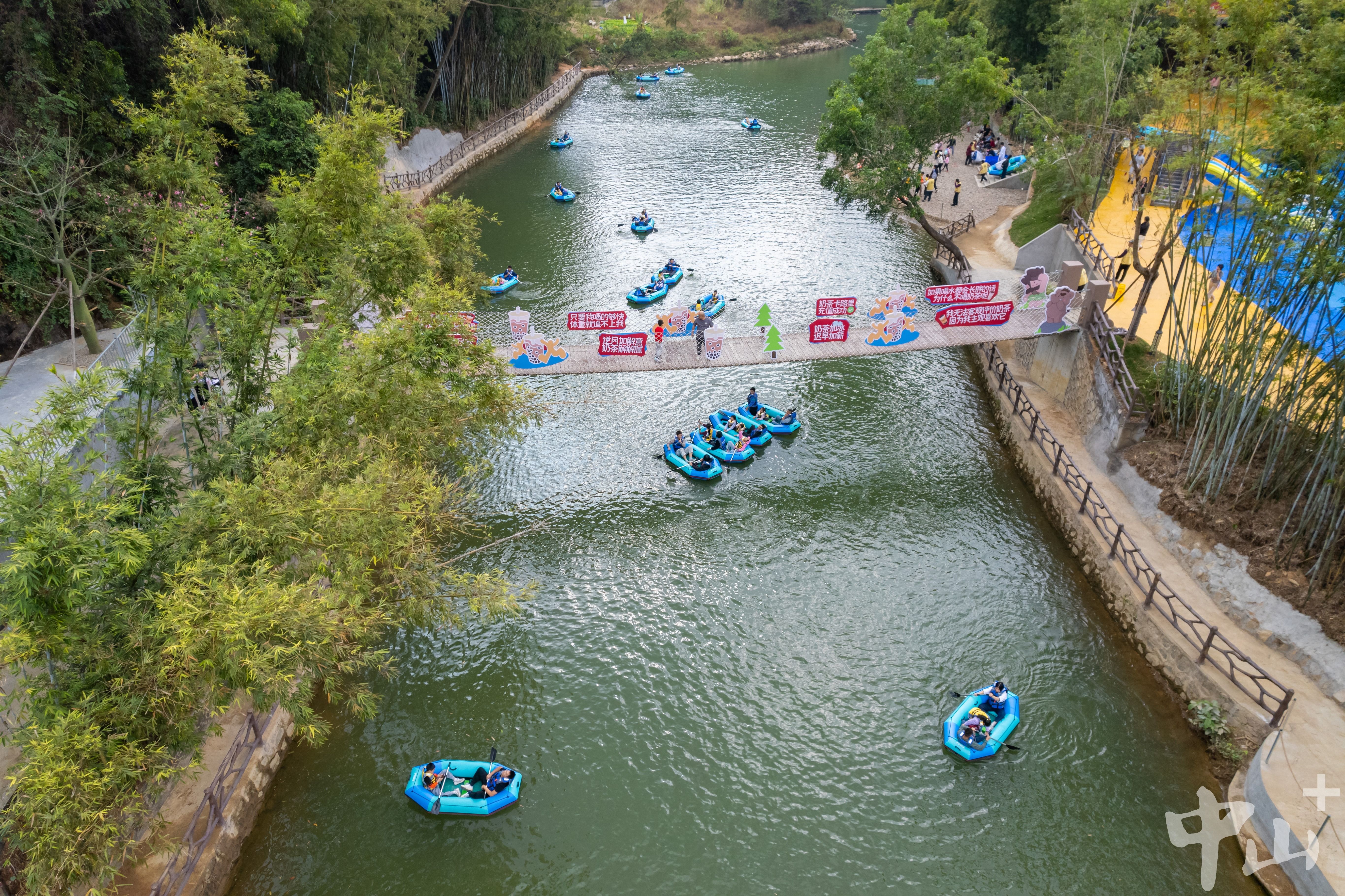 上午9时,度假区陆续迎来客人,手持预约凭证的游客们脸上洋溢着期待。“五桂山是天然氧吧,元旦节假日我们第一站就选择了这里。”来自珠海的陆先生笑着对记者说道。据了解,试营业期间每日限量500个免费入园名额,游客可以通过“嘭嘭岛乐园”和“五桂山发布”微信公众号预约,让这片秘境始终保持着舒适的游览氛围。记者步入园区,583亩的生态画卷徐徐展开,清泉环绕、翠竹成荫,紧邻坦洲快线、倚靠深中通道的地理优势,让粤港澳“一小时生活圈”的便捷性在此尽显。