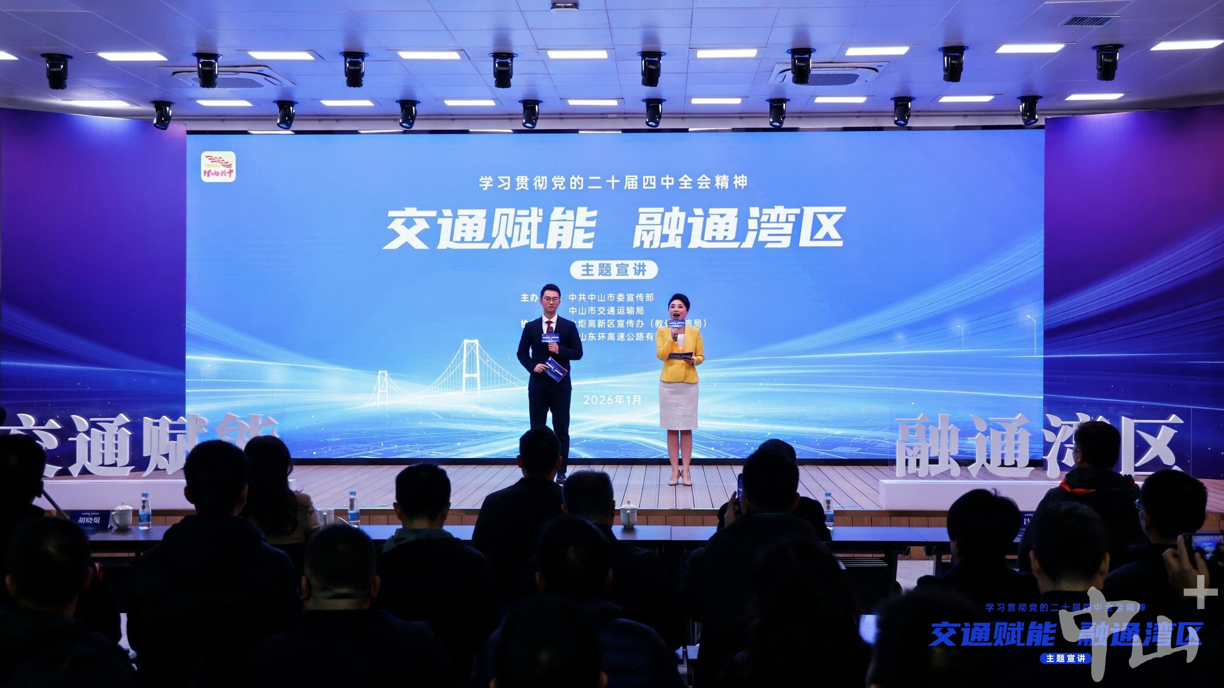 “伶仃洋上,飞虹卧波;大湾区内,路网如织。”1月22日下午,中山东环高速公路有限公司内掌声阵阵、暖意涌动,“交通赋能 融通湾区”主题宣讲活动在此举行。本次活动由中共中山市委宣传部、中山市交通运输局主办,作为中山市学习贯彻党的二十届四中全会精神系列主题宣讲交通专场,六组宣讲员结合自身工作经历,通过实景影像与深情讲述,串联起中山交通五年跨越的奋斗足迹。