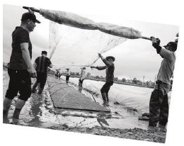 崖口村的村民盖上薄膜育秧。张鉴来 摄