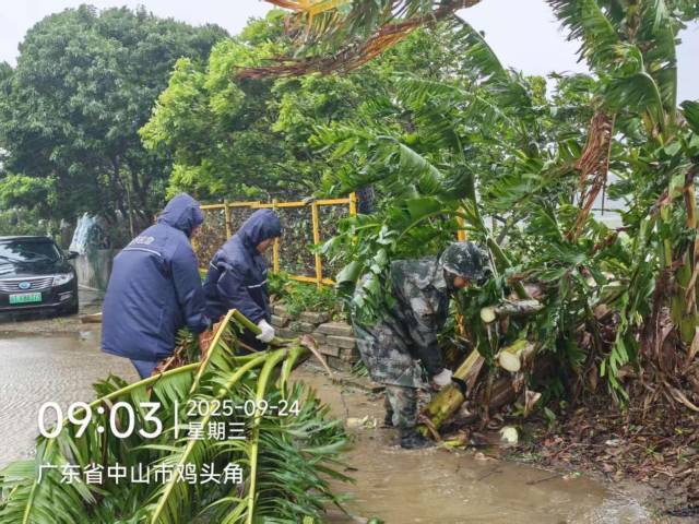 为坚决打赢第18号台风“桦加沙”防御硬仗,全力保障人民群众生命财产安全,中山市南朗街道坚决贯彻上级防汛防台工作部署,紧盯沿海低洼地带等重点区域,迅速组织动员,织密防风防汛安全网。9月24日上午,一支由退役军人和民兵组成的先锋力量闻令而动,火速奔赴南朗龙穴村鸡头角村发小组等防台前沿阵地,投身险情排查、人员转移和应急清障任务最前线。