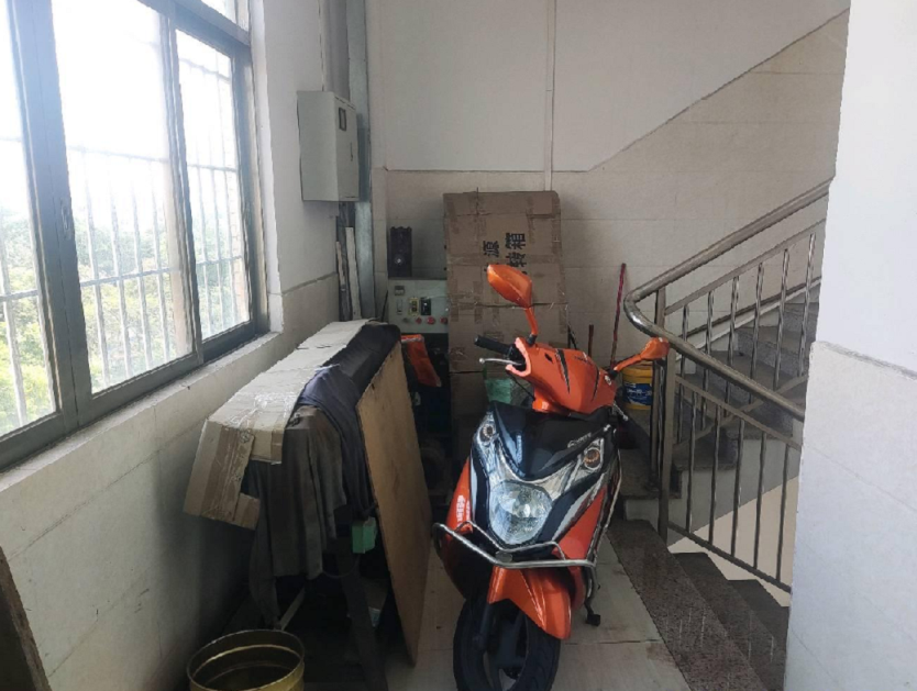 隐患内容:公共疏散通道停放电动自行车,责令立即改正现场清理车辆及杂物。