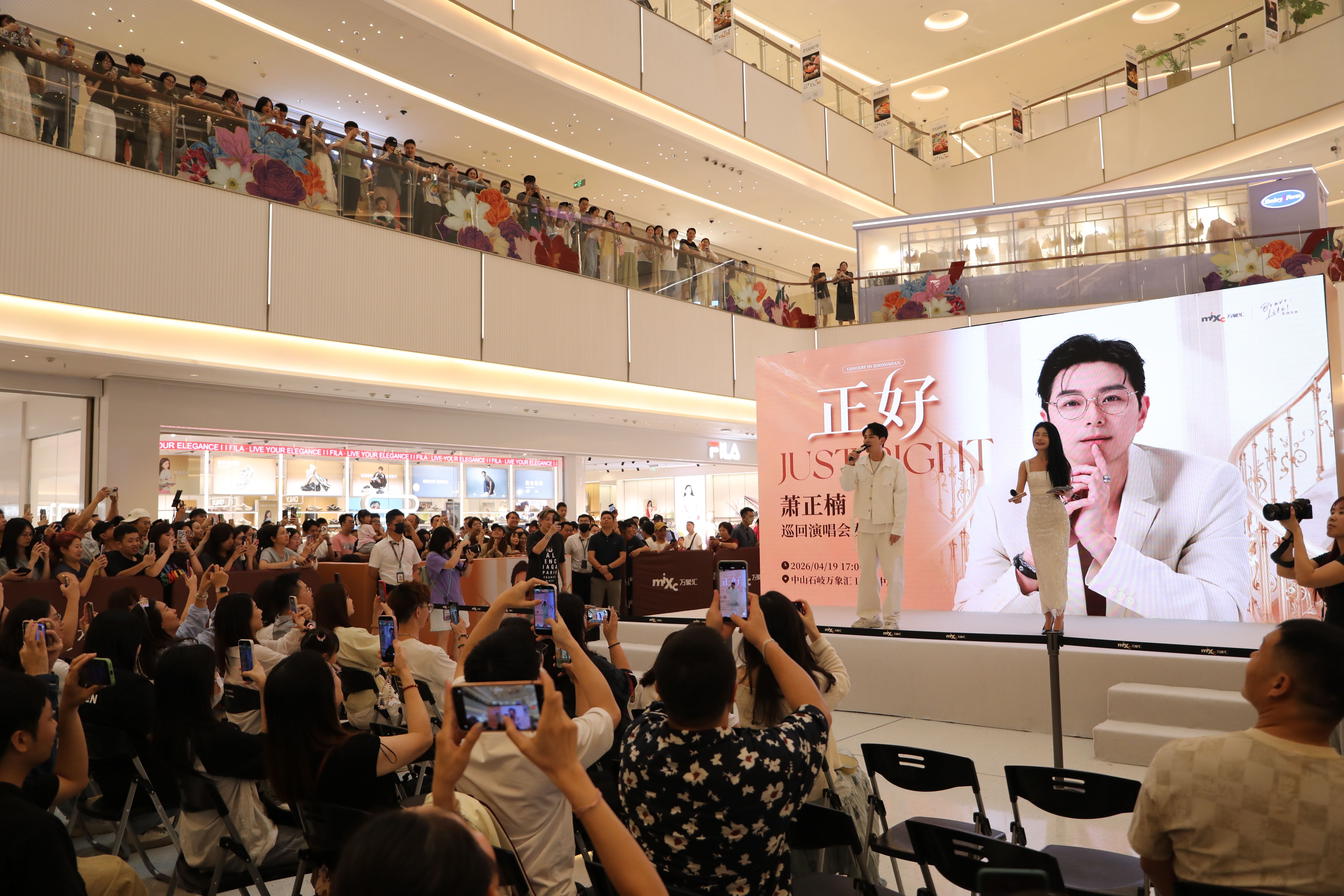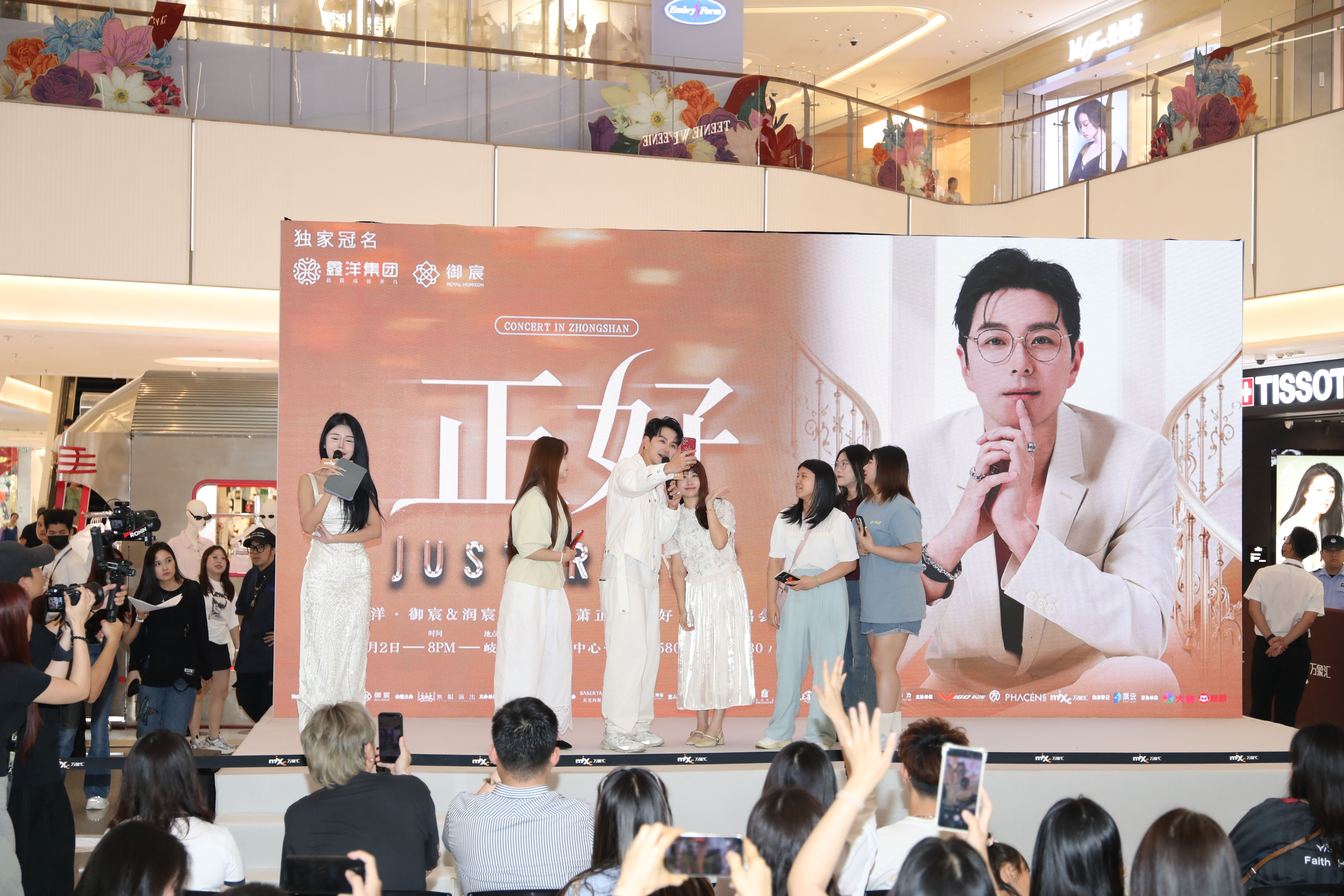 4月19日下午,中山市万象汇中庭人潮涌动, 2026萧正楠“正好”巡回演唱会中山站发布会现场被粉丝围得水泄不通。当他穿着干净利落的套装现身时,现场尖叫声此起彼伏,快门声连成一片。他笑着挥手,用粤语亲切回应:“中山的朋友大家好,我回来了!”瞬间点燃全场气氛。