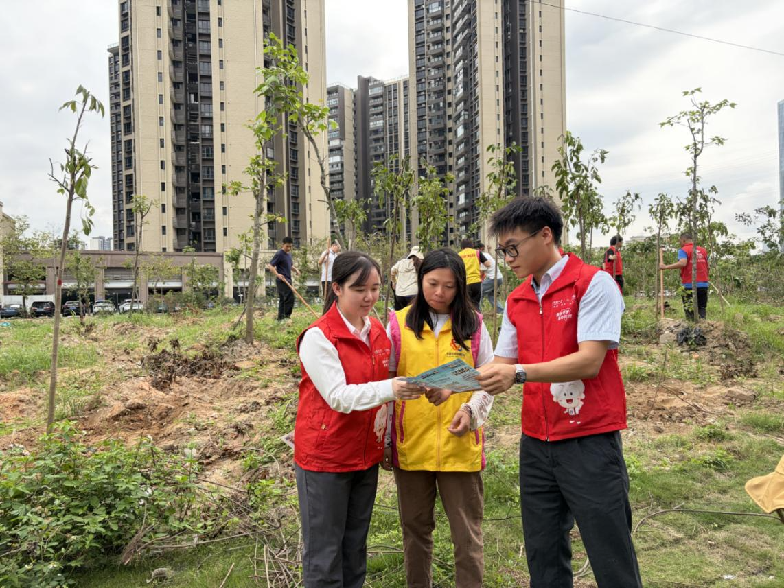 4月17日,在莲员社区指定的植树区域,一派热火朝天的劳动景象。广发银行中山分行志愿者与莲员社区工作人员、热心居民一道,挥锹铲土、扶苗培土、提水浇灌,各个环节衔接有序,配合默契。经过一番辛勤劳作,三十余株新栽的树苗迎风挺立,在春光中焕发出勃勃生机。