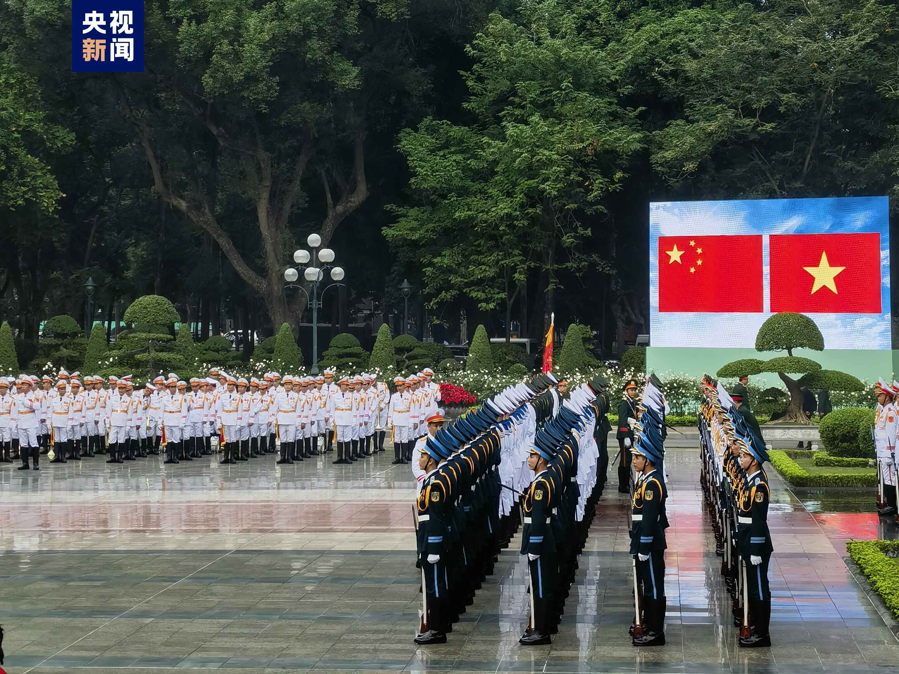 当地时间12月12日下午,中共中央总书记、国家主席习近平出席越共中央总书记阮富仲在主席府广场举行的欢迎仪式。