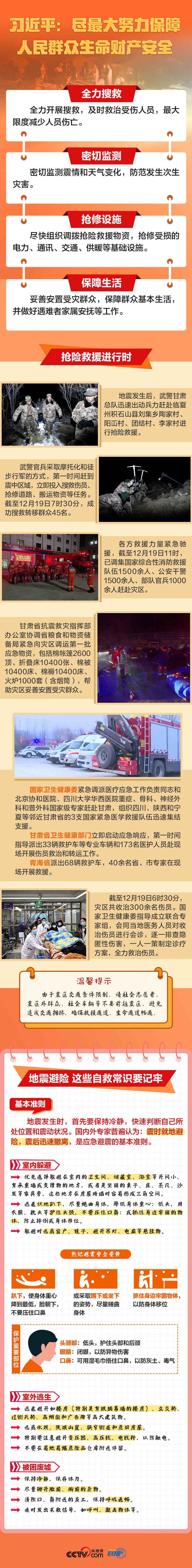 地震发生后,习近平总书记高度重视,并作出重要指示部署抢险救援工作。从伤员救治到次生灾害防范,从基础设施抢修到受灾群众安置,传递出总书记对灾情的高度重视和对受灾群众的深切关怀。
