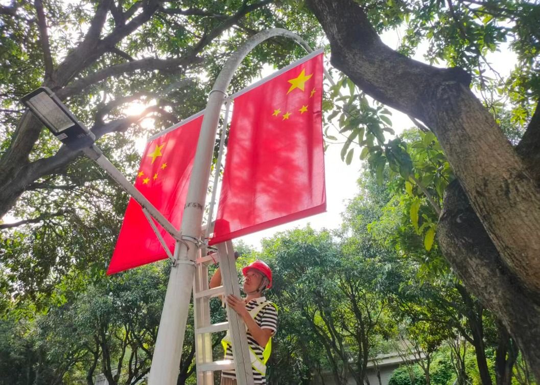 “开工第一天,在中山三路装上了第一面国旗。”苏振昌对那个瞬间记忆犹新。当那面国旗在他手中稳稳地安装到位,并在晨风中开始飘扬时,他内心的自豪感油然而生。“心情很激动,因为能看到我们的国旗在随风飘扬。”