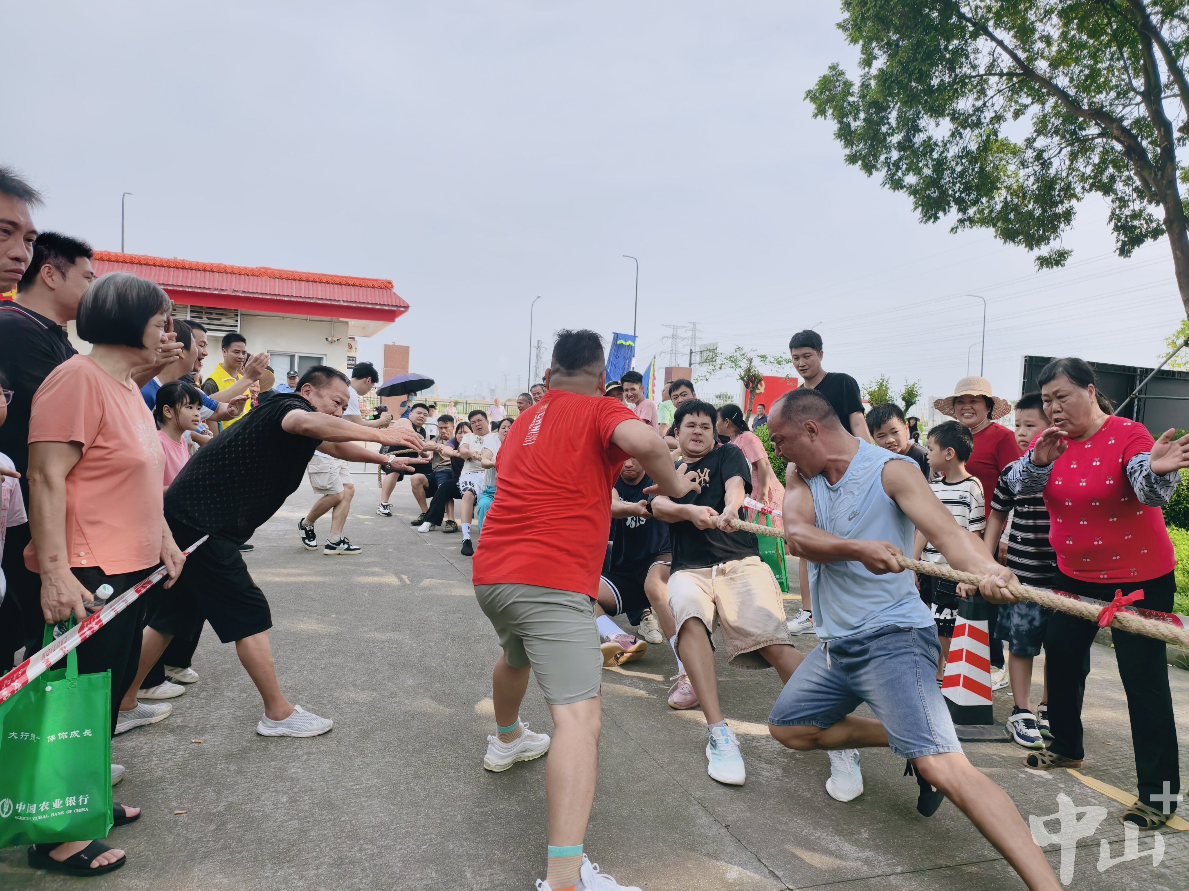 10月1日,港口镇胜隆社区党群服务中心门口热闹非凡,氛围热烈。该社区举办2025年“欢度中秋·喜迎国庆”第十届体育运动会拔河、乒乓球比赛及趣味游园活动,共有来自辖区的企业职工与社区居民1500多人参加活动。经过激烈的角逐,新隆十四队从11支参赛队伍中脱颖而出,夺得本届拔河比赛的冠军。冯锦鸿、陈华全和徐雨阳分别获得乒乓球比赛的冠军、亚军和季军。