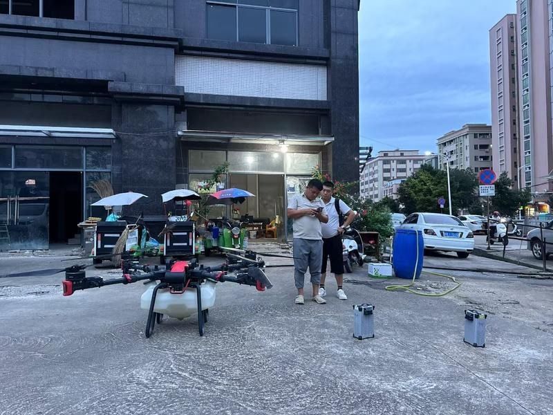 “灭成虫不如控幼虫。”驻村医生强哥背着20公斤重的喷雾器,带队逐间排查空置房,倒扣花盆、疏通天沟,217处积水容器全部倾倒消毒,并投放石灰粒85公斤。“每处积水边缘都要撒三层石灰,碱性物质能瞬间杀死幼虫。”镇疾控中心监测数据显示,幼虫密度较整治前下降96%,防控成效显著。同时,针对楼顶、深坑、高草丛等人力难及区域,镇里紧急调配2架植保无人机,搭载低毒高效杀虫剂开展作业。“一架无人机一小时作业面积相当于20个人工,还能避免人员攀爬风险。”镇农技中心技术员阿俊介绍,无人机累计飞行32架次、覆盖4.8万平方米,与地面人工消杀形成“空天地”立体防控网。
