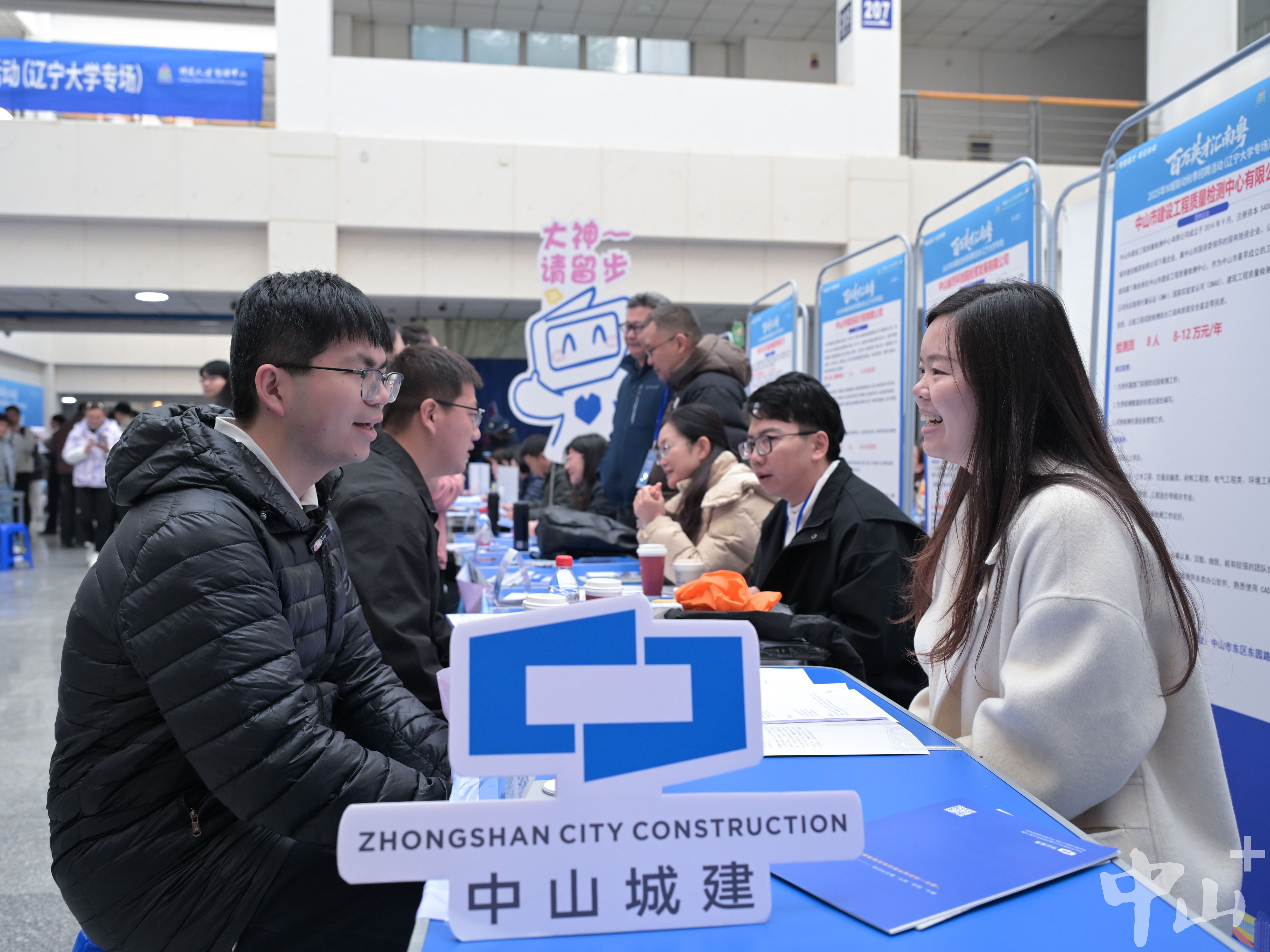 “中山有请‘住’梦未来——好工作+好房子,中山为你配齐”安居专区前,相关工作人员针对性解答城市区位、住房成本、安居政策等学子关心的核心问题,咨询声此起彼伏。