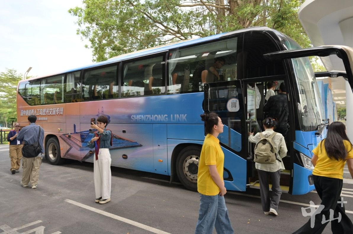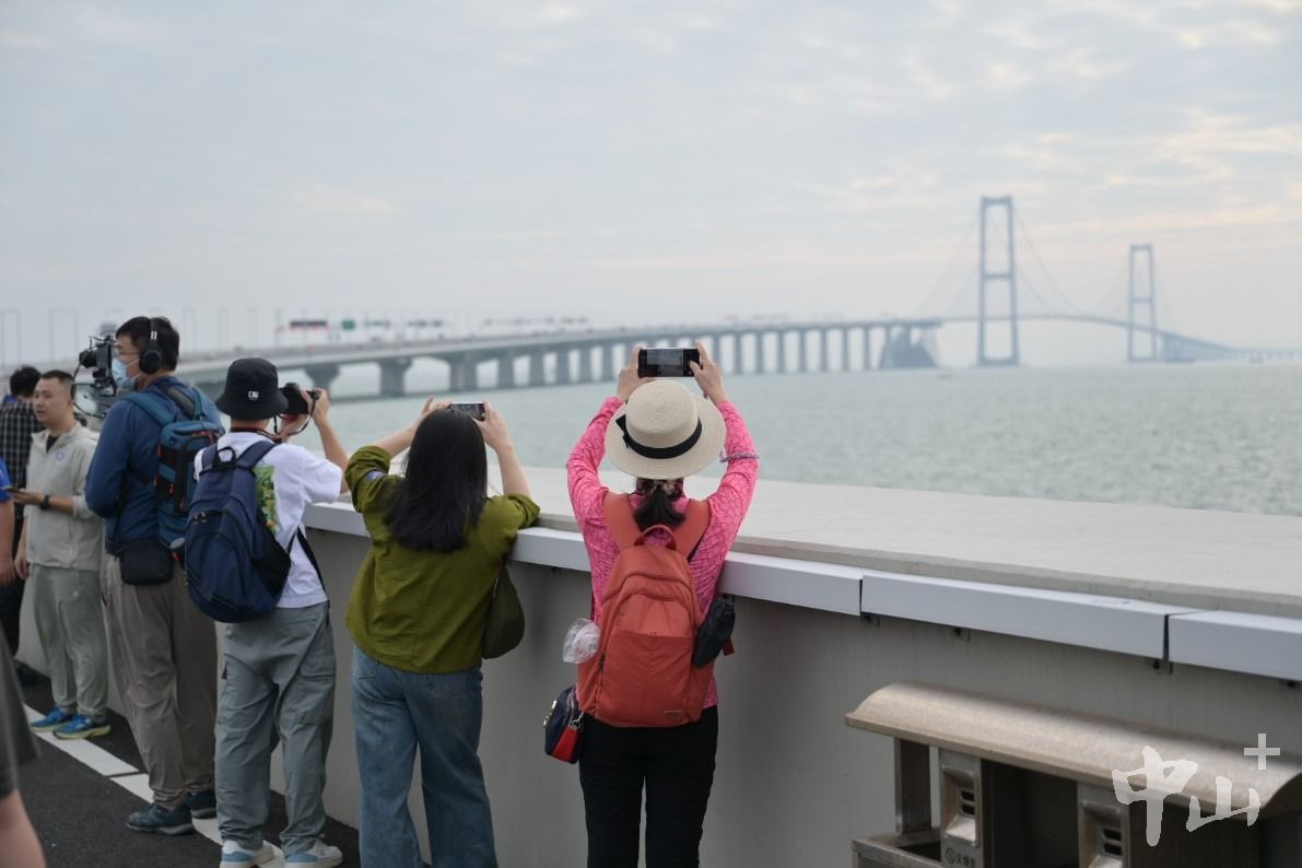 下午2点40分,当接驳大巴,从深中大桥引桥驶缓缓驶向如“鲲鹏展翅”般的13.7万平方米海上巨岛——西人工岛,游客谢先生隔着车窗发出感叹:“在照片上看过无数次,但只有身临其境,才能感受到这种跨越天堑的震撼。”