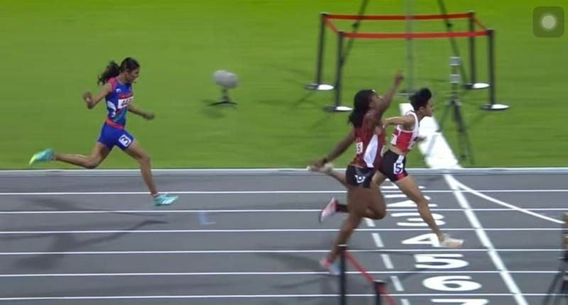 进入途中跑环节,中间道次的选手开始发力突围,来自阿联酋的百米冠军选手凭借强劲爆发力一度领跑。面对强劲对手,陈歆璇始终紧咬节奏,丝毫没有松懈。凭借出色的步频调整和核心力量,她突然加速,从侧后方强势超越对手,在冲刺阶段率先冲过终点线。