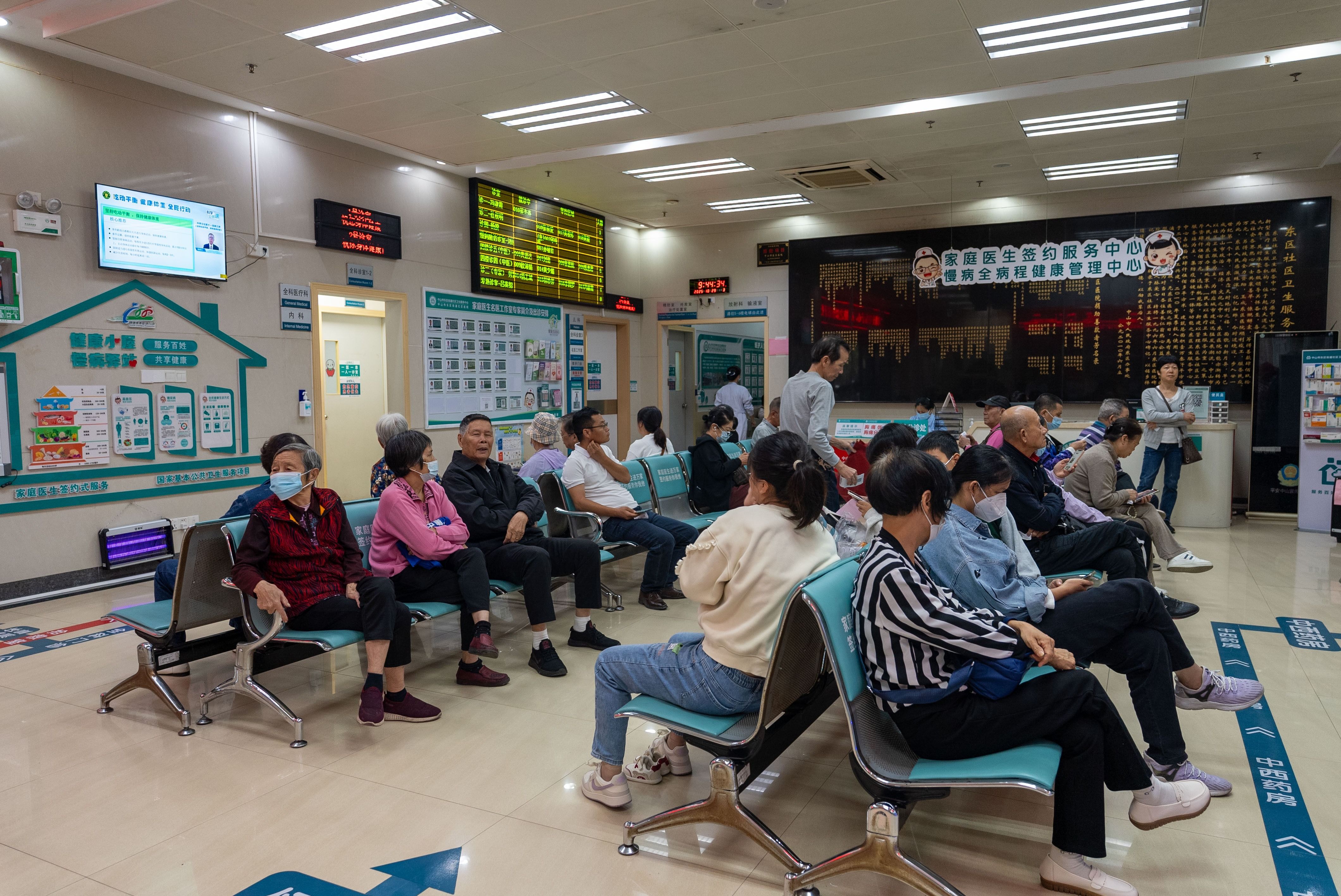 我市一社区卫生中心候诊室坐满了等待的人群。记者 黄艺杰 摄