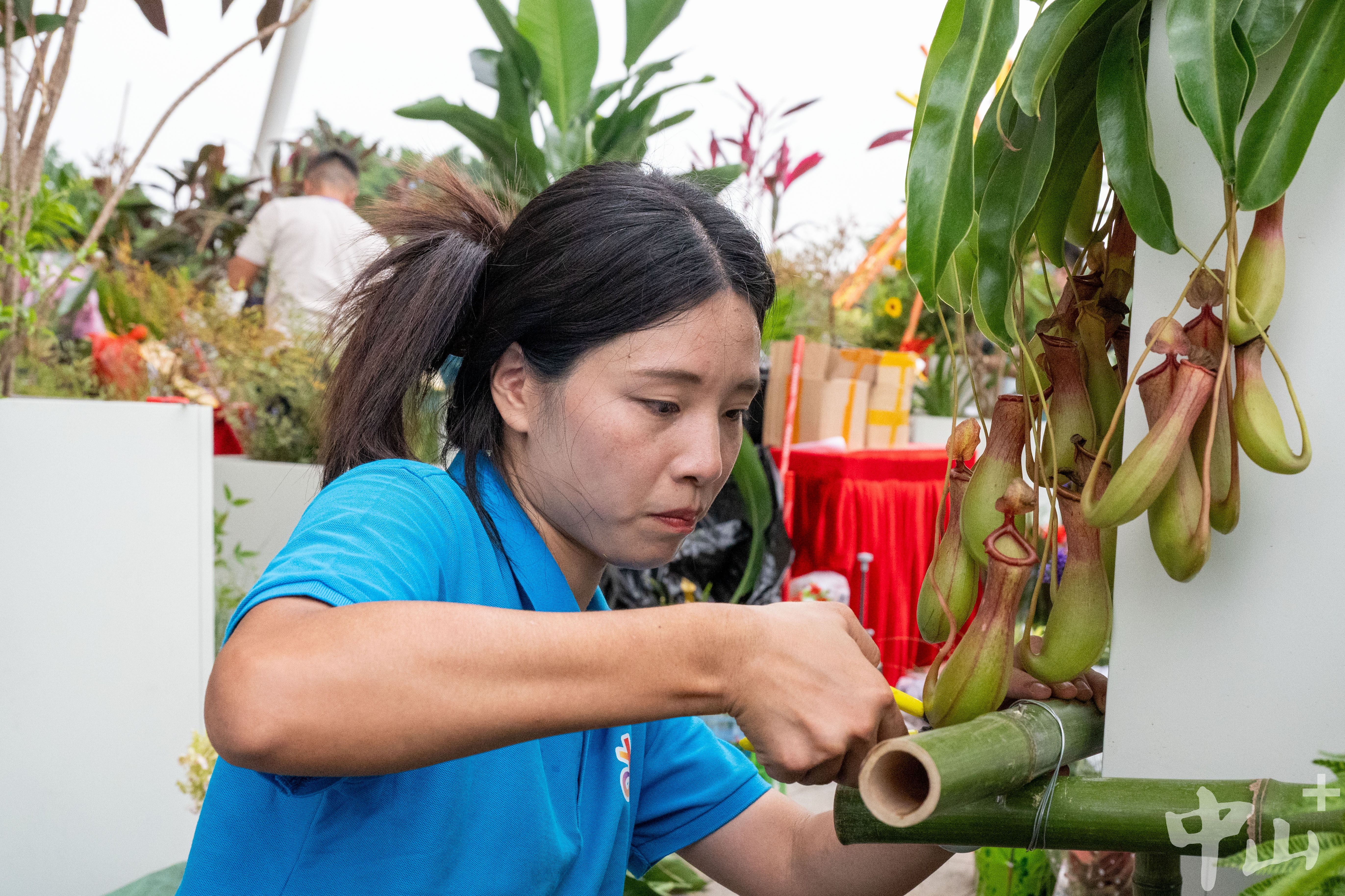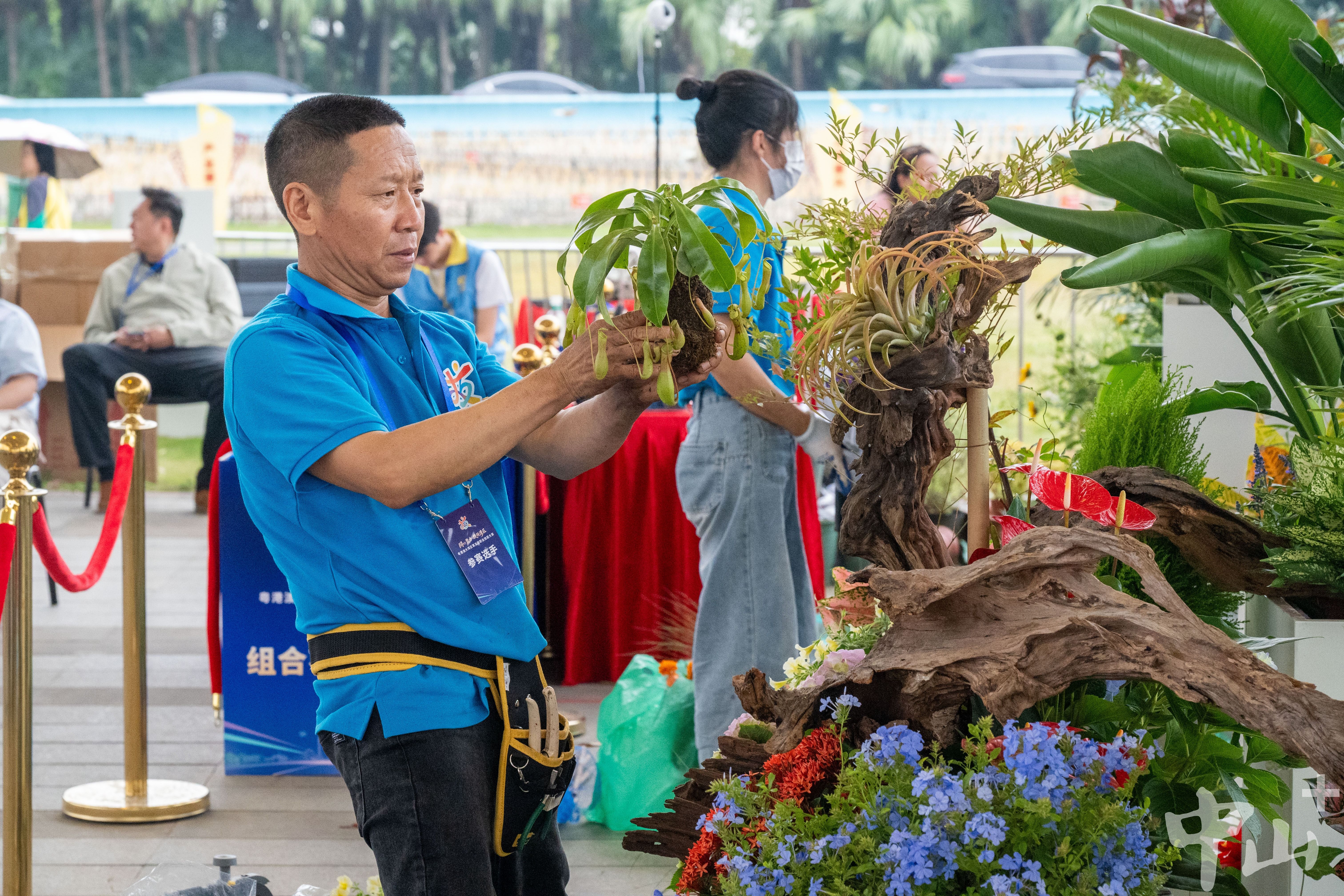从事花艺设计五六年的中山参赛选手罗杏仪,是横栏镇的“花木二代”,本月刚获得“香山工匠杯”花木工匠竞赛一等奖。大学学习服装设计的她,选择回到家乡,将设计理念融入花艺。在花箱项目中,她使用了许多绣球花,并巧妙融入中山灯饰与醒狮元素,展现出传统与创新的结合。提及花木产业现状,她感触颇深:单纯种植苗木利润微薄,而通过艺术设计提升为花艺作品后,价值能实现数倍增长。她希望借助这类赛事平台,吸引更多年轻人返乡,共同推动横栏花木产业向高附加值领域转型升级。