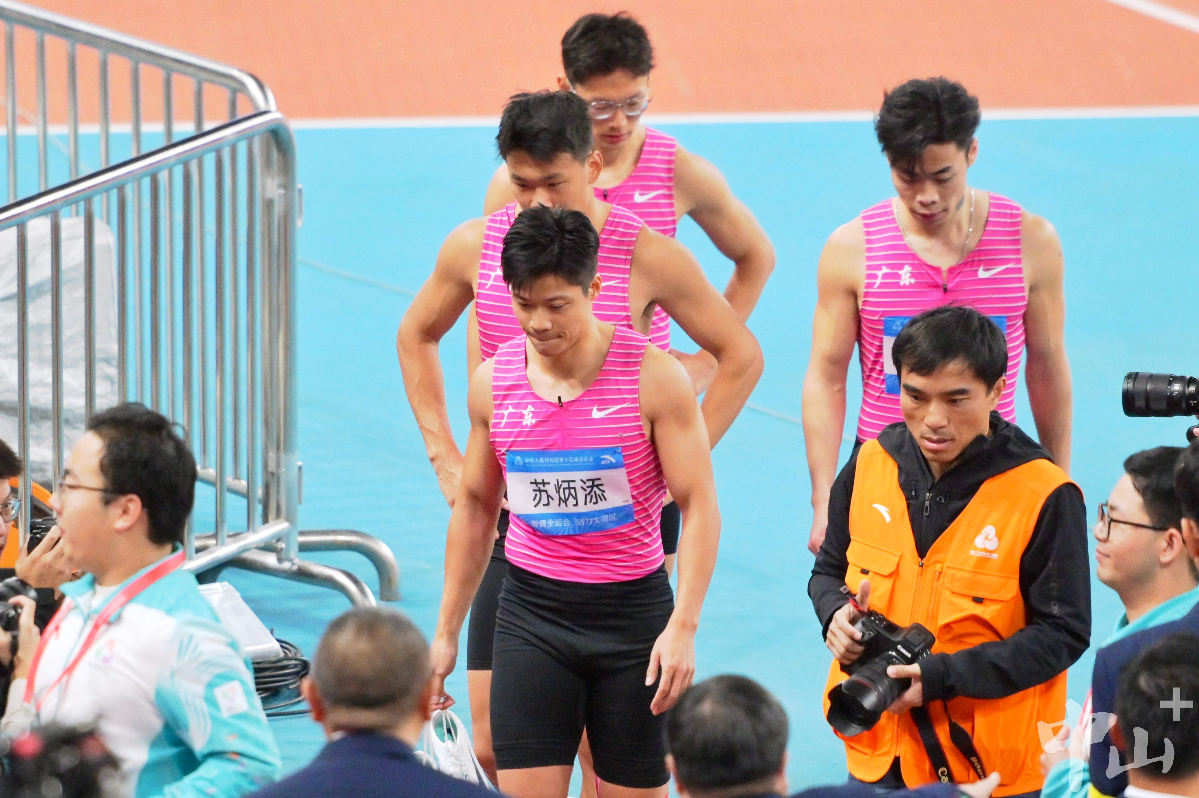 决赛中,广东队阵容强劲——苏炳添领衔第一棒,新科200米冠军施君豪、百米好手陈冠锋共同出战。苏炳添的起跑反应依然出色,如离弦之箭般冲出。然而,在二三棒交接时出现细微停顿,这个小失误让广东队失去了关键节奏。尽管第三棒施君豪奋力追赶,第四棒陈冠锋与江苏选手几乎同时撞线,但广东队仍以38秒71的成绩名列第四,以0.03秒之差无缘奖牌。