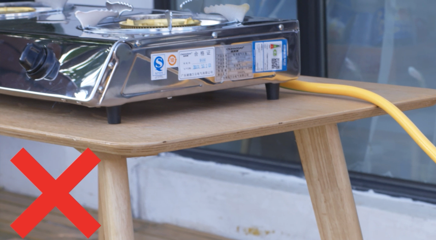 3.燃气灶台面必须使用防火材料,禁止将燃气灶直接放置在木质台面上。