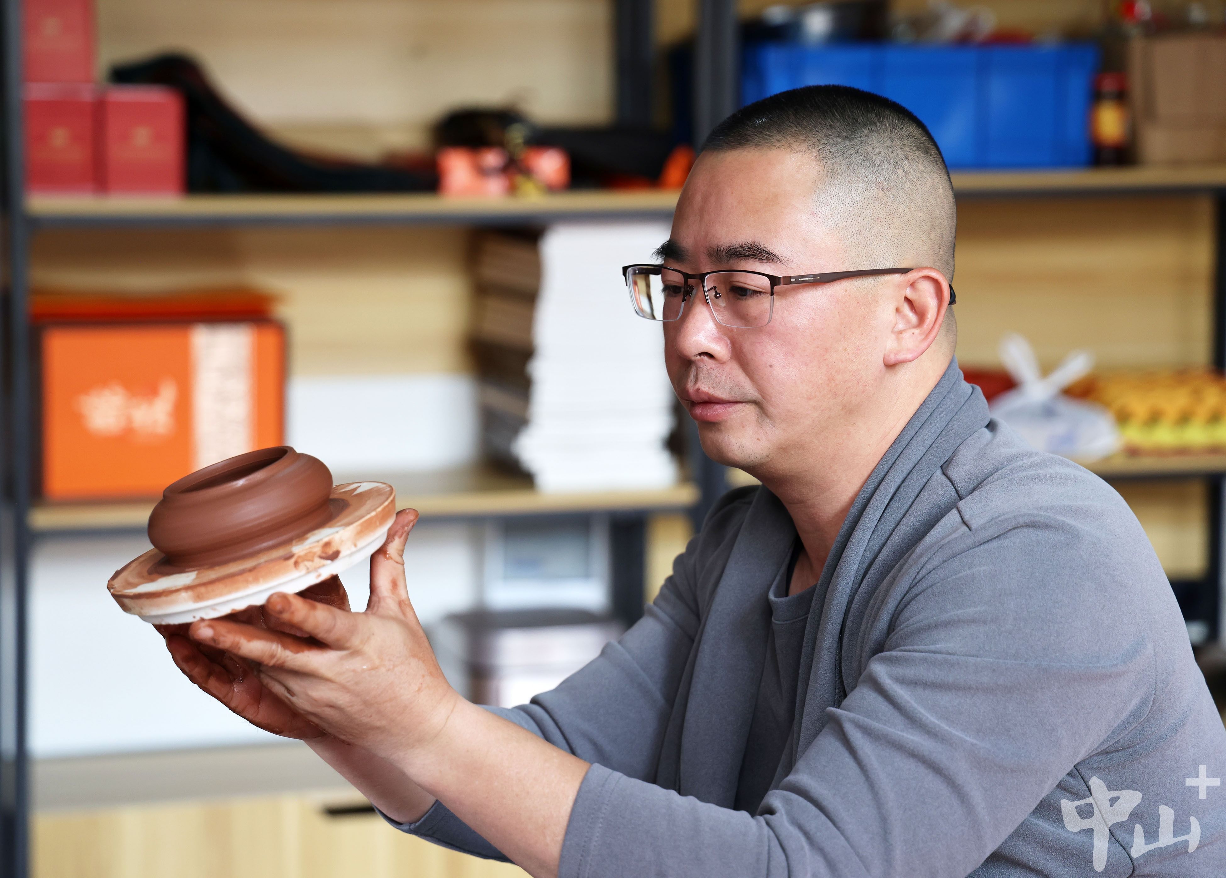 12月30日上午,在三乡雍陌村,开张半个多月的“惟滨壶艺”工作室,吸引着游客前来探访。在中潮结对牵线下,潮州市工艺美术协会副会长、高级工艺美术师、潮州手拉朱泥壶非遗传承人郑惟滨来到这里开设工作室。