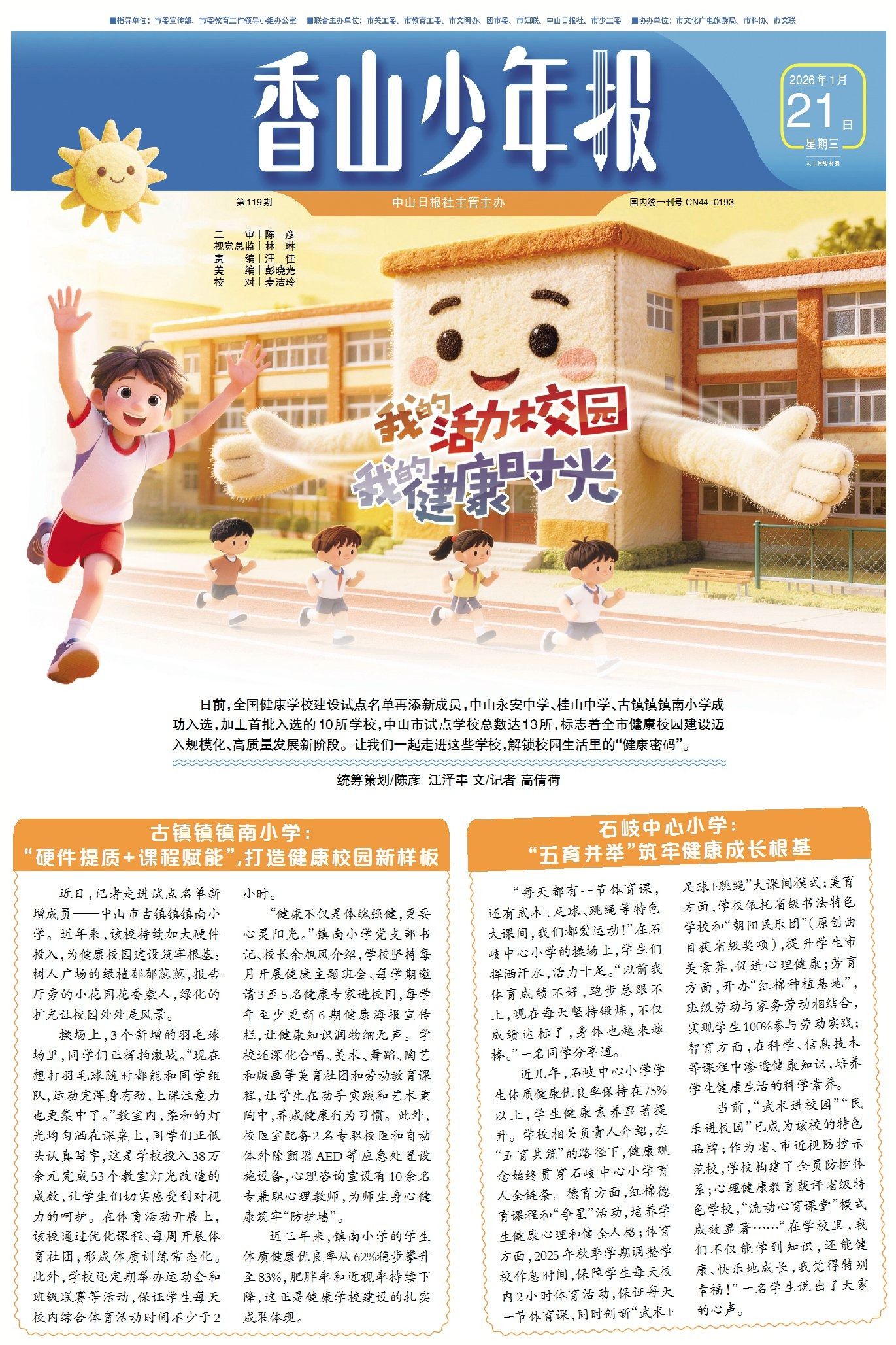 入选全国健康学校建设试点名单的学校,有哪些“健康密码”?古镇镇镇南小学通过“硬件提质+课程赋能”的方式,打造健康校园新样板;石岐中心小学以五育并举筑牢学生健康成长根基,保障体育活动时间、打造特色大课间,融合渗透健康理念。(→点击查看详情)