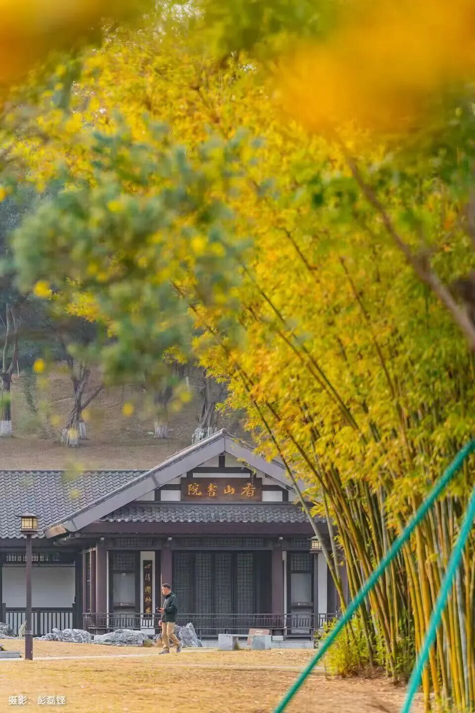 1、从金钟湖公园大石头入口,进入公园,至古香林公园(左侧)拾级而下,竹林边一层建筑即香山书院大讲堂(南山竹院);