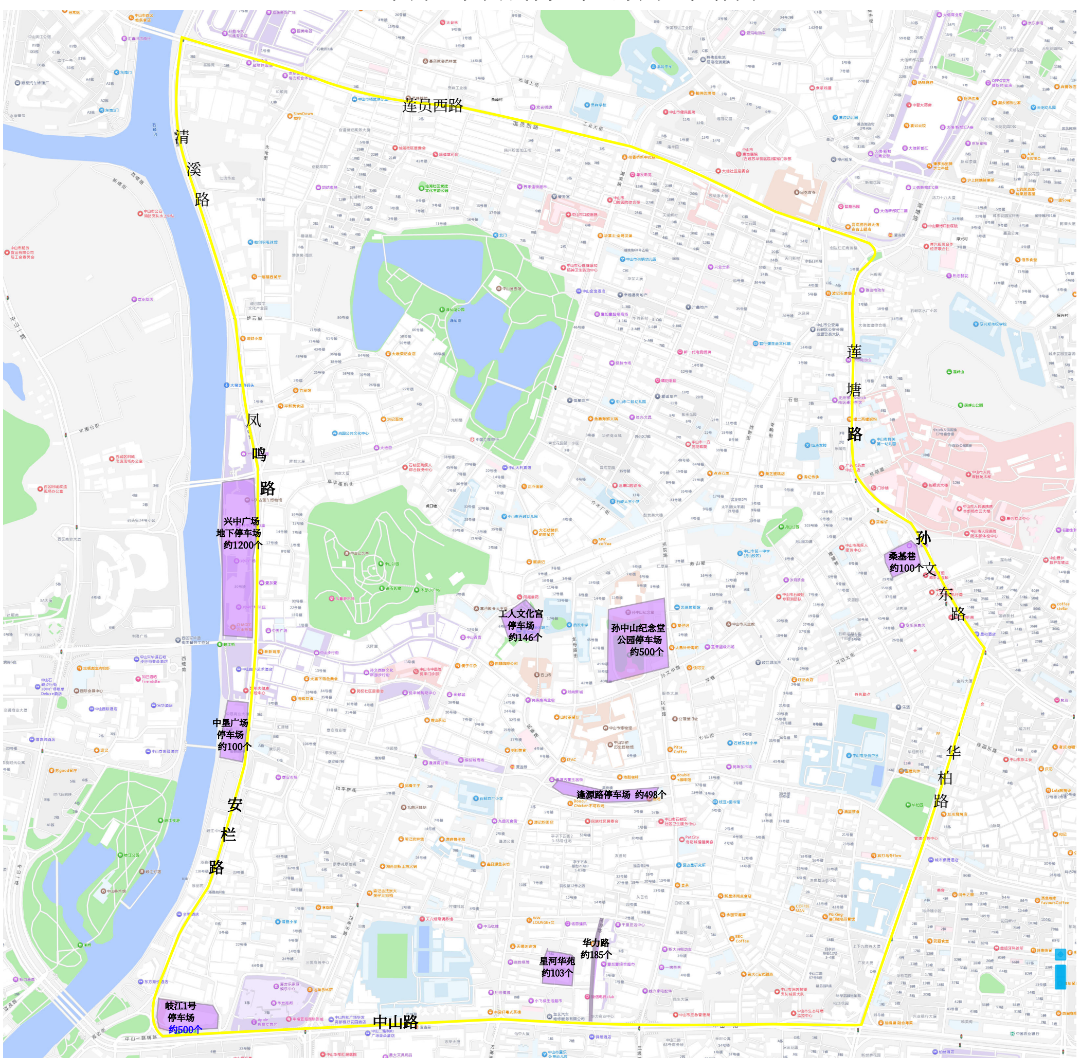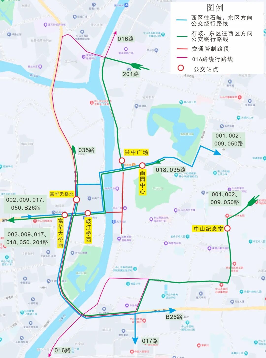 2月16日至2月23日每日10时至22时,对香山古城核心区域的凤鸣路(双向)、南基路(双向)、岐江桥(双向)根据现场人流量动态实施临时交通管制。