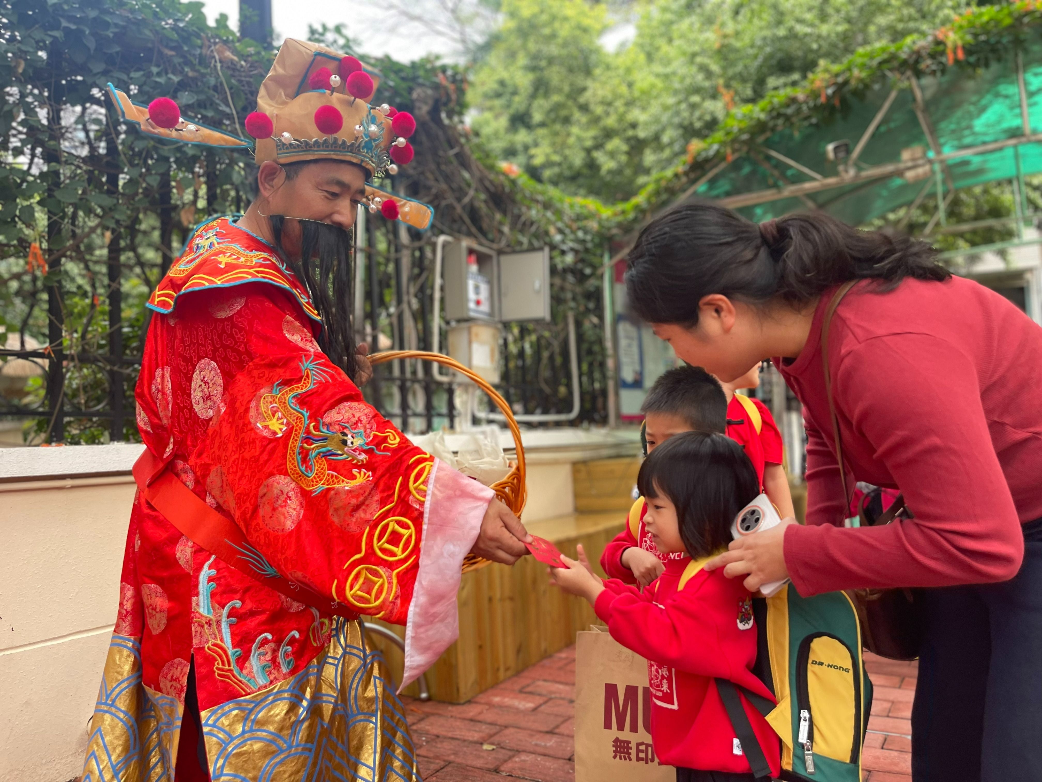 “财神爷”给萌娃派糖果红包