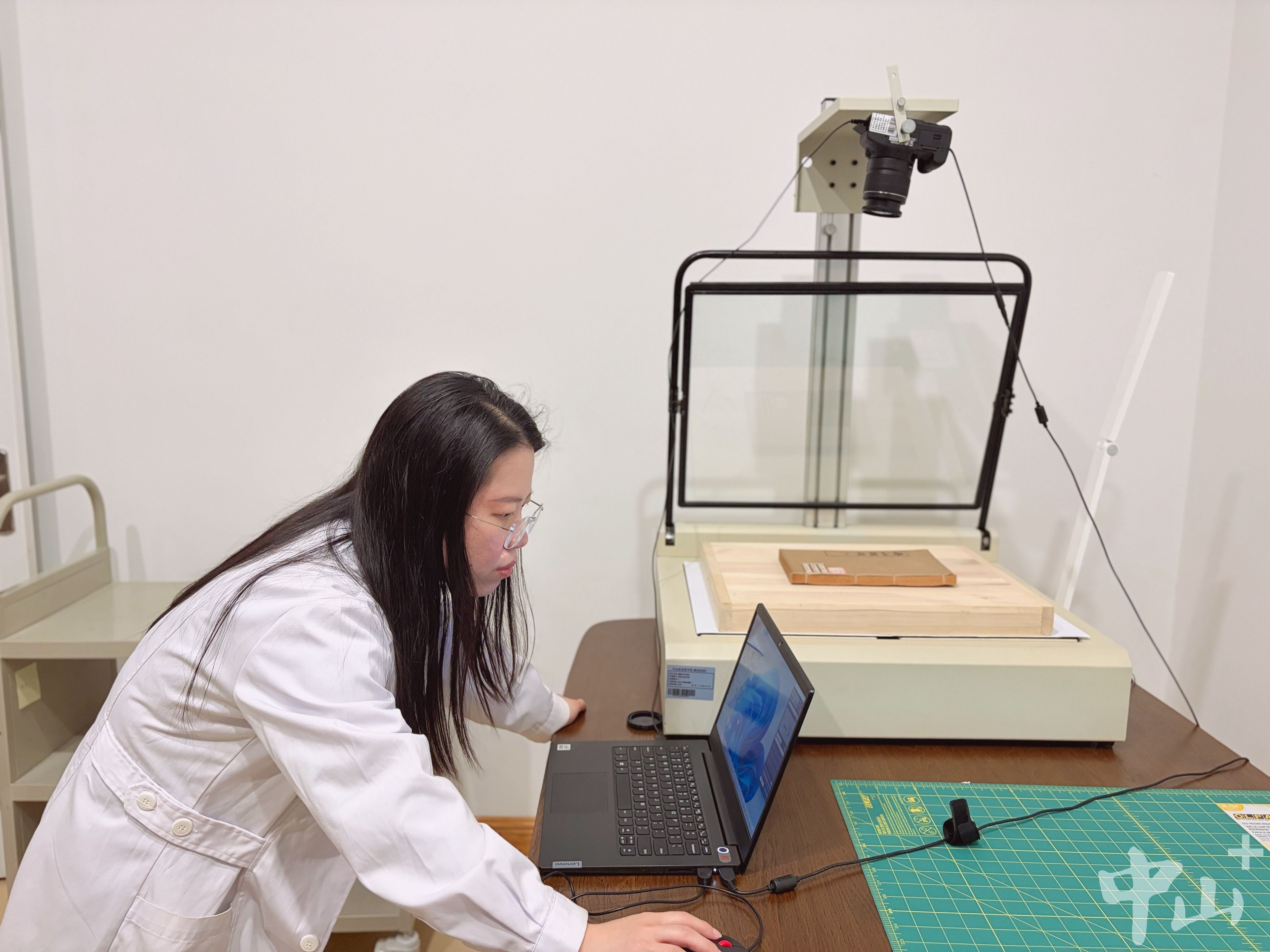 她的工作台,一半摆着古籍修复的“老伙计”:一把尖细的镊子、一支柔软的毛笔、两个盛水和浆糊的碗、装订用的木锤,还有几张与古籍纸张色泽、厚薄几乎一致的竹纸;另一半则放着相机、电脑、扫描仪,屏幕上显示着文献数字化的进度界面。