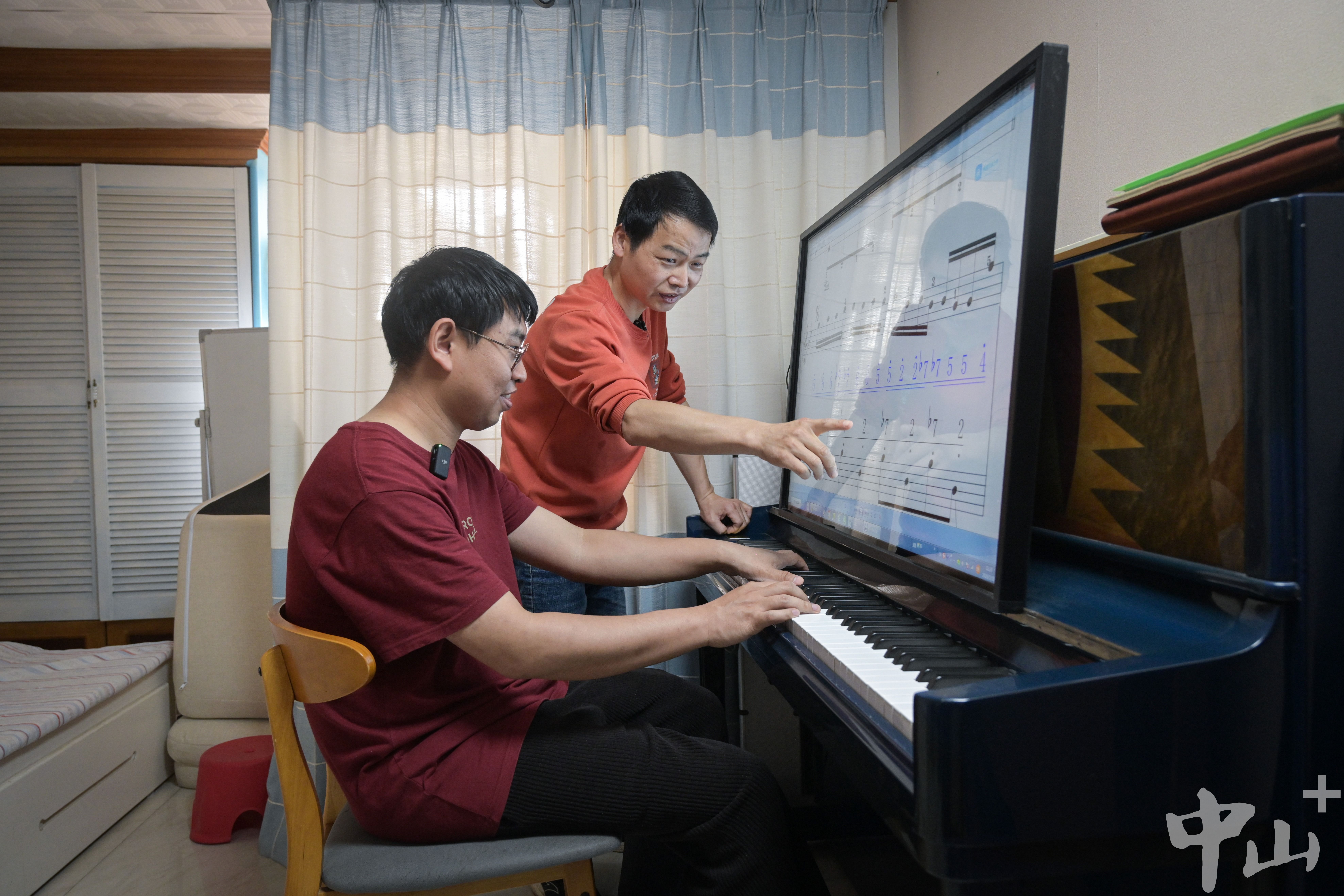 珠江口,渤海边,相隔千里的两人,原是命运的两条平行线。2006年,湖南小伙韩勇毕业后便来到中山,一扎根就是20年。起初,他在中山市老干部大学执教钢琴,从那时起,他便产生了“让更多人轻松懂琴”的想法。2013年,出于身体原因,他不得不告别线下课堂,转而投入网络钢琴教学。怀抱着开创“自学钢琴时代”的梦想,他潜心钻研五线谱、简谱、指法一体的直观教程,让更多人能通过远程教学,以更低的门槛,走进音乐的世界。