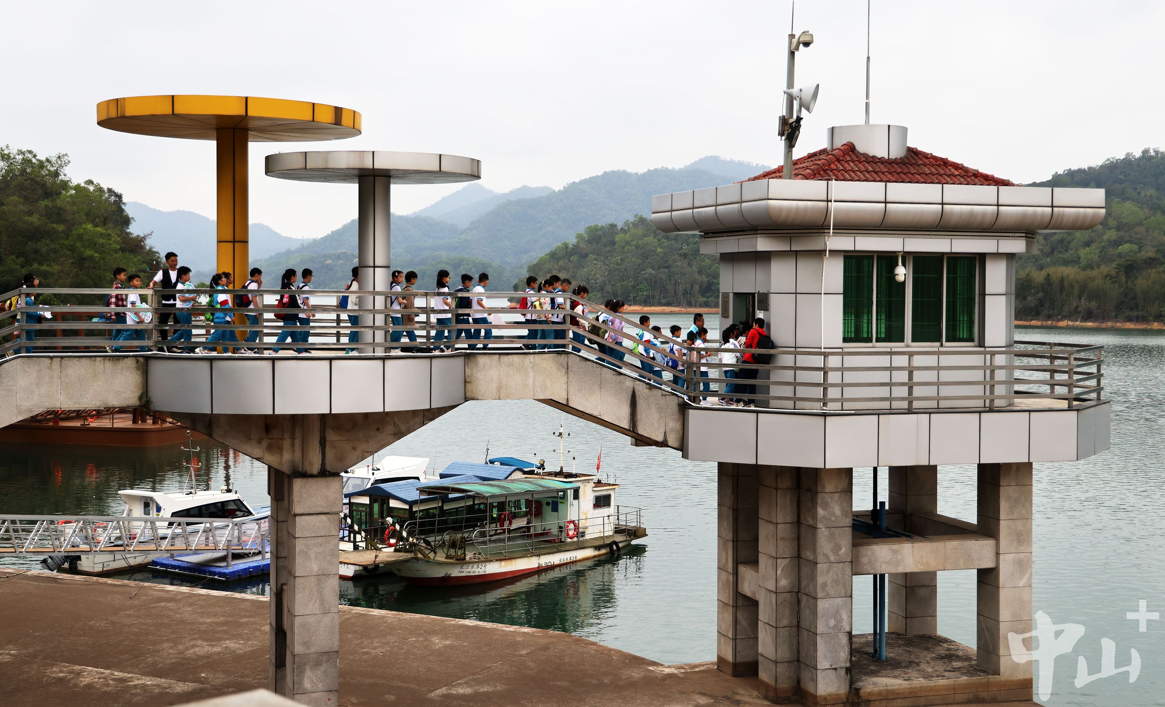 在市重点项目双水源关键节点“浮船式泵站”前,孩子们驻足围观、热情讨论。工作人员顺着孩子们手指的方向,详细讲解泵站的工作原理。这座中山最新型的取水站投用后,能在咸潮期间保障大丰水厂应急用水,释放长江水厂产能,满足城市用水的增长需求。
