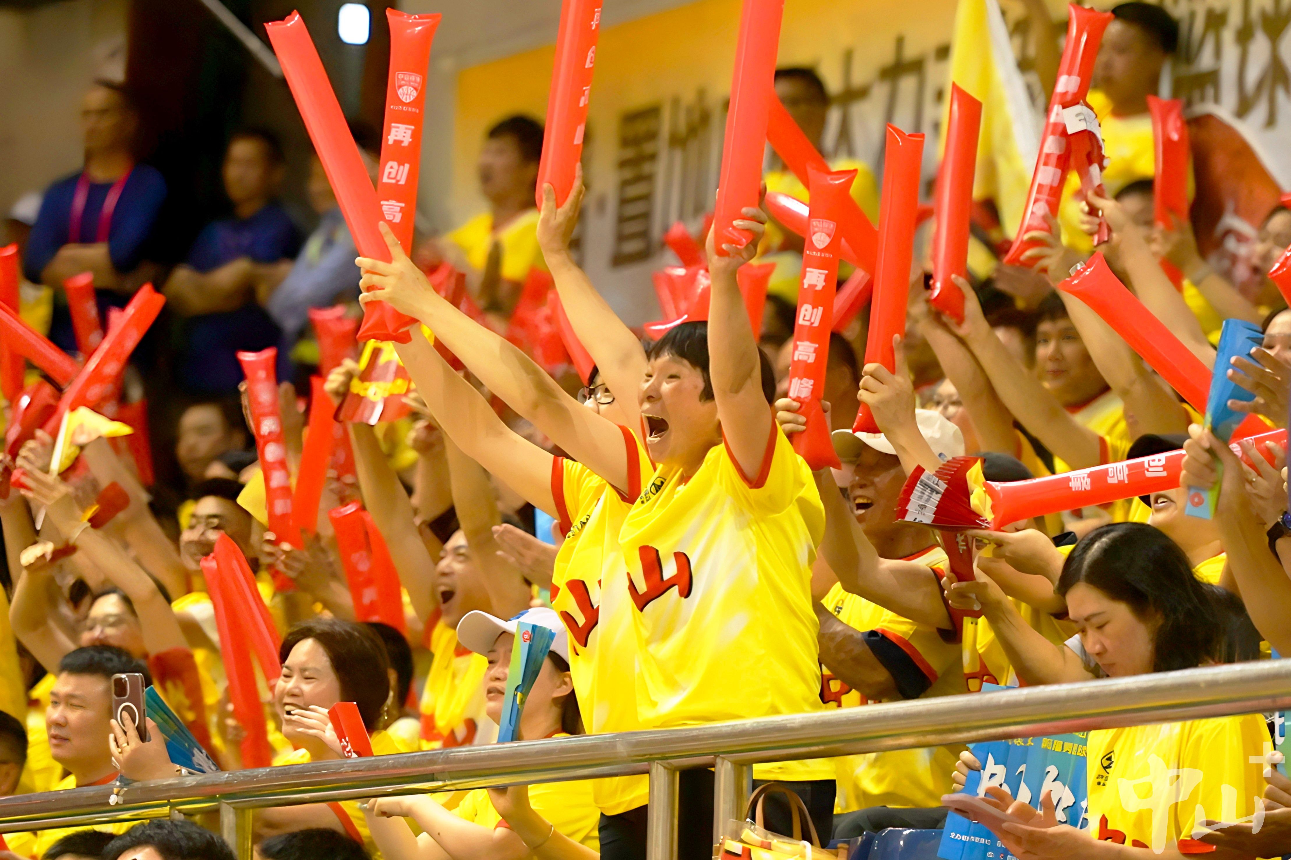 对比此前在广州天河体育馆的客场赛事,受限于现场人数、应援道具等条件,此次中山主场在人员规模、道具配备上充分展现了主场优势:不仅新增小鼓、威风锣鼓等节奏性装备,还统一配发应援服与发光手牌,比赛现场氛围更燃了。