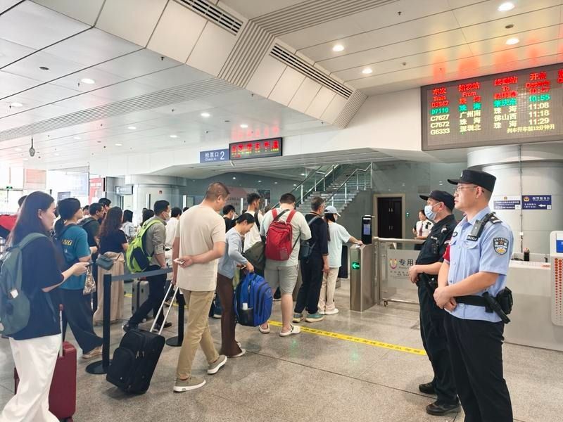 “广珠城际客流呈现时段集中、短途为主、早晚峰值明显特征。”中山站派出所相关负责人表示,针对这些特点,中山站派出所实行“警力跟着客流走、岗位随着流量调”动态布警模式,在安检口、售票厅、站台、进出站通道、扶梯等易拥堵区域,实行定点值守与流动巡逻相结合。