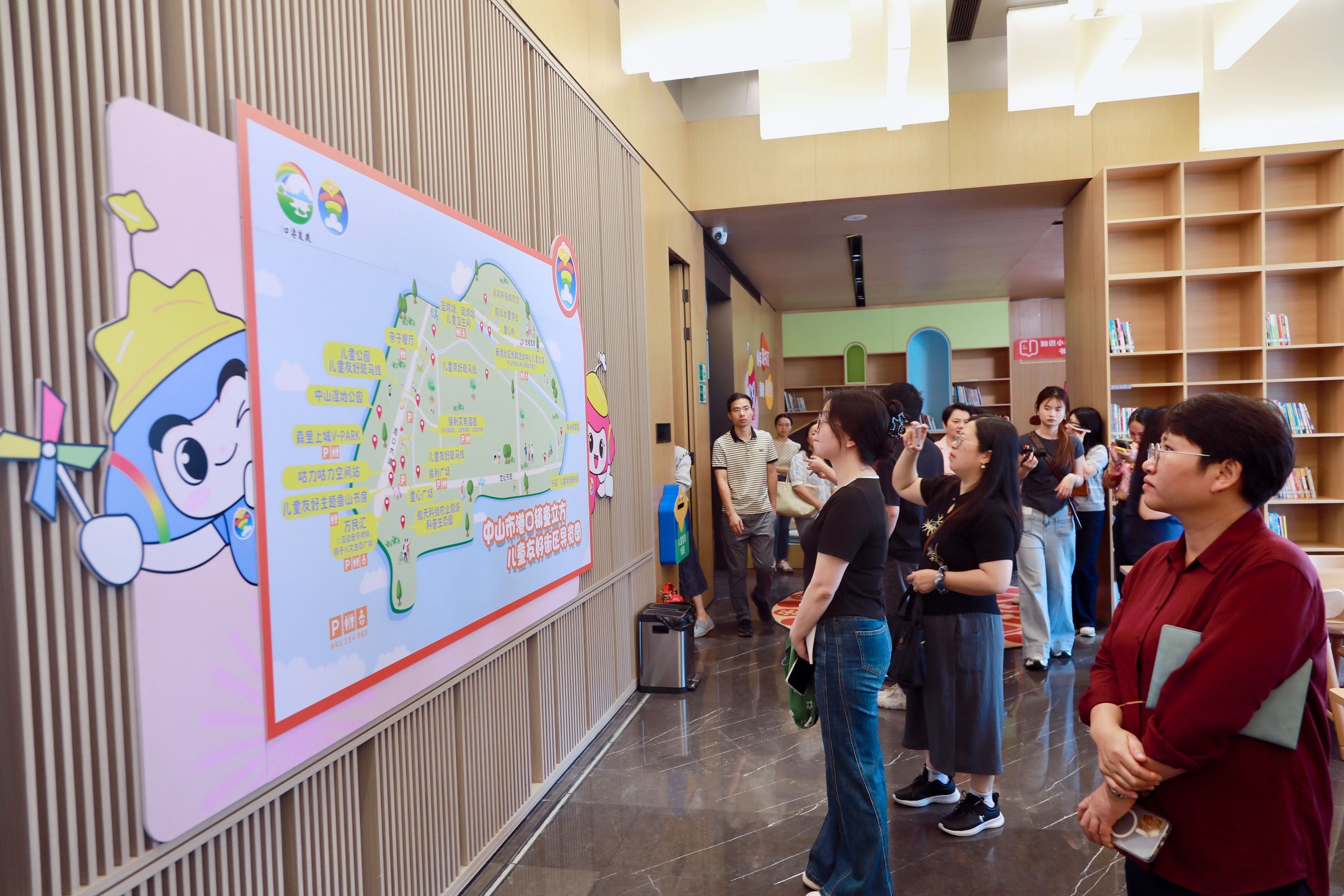 在现场观摩环节,与会人员走进港口镇“童立方”儿童友好街区,沉浸式参观城市客厅、儿童友好主题香山书房、儿童友好酒店等特色点位,近距离感受“小资金撬动大投入、微改造激活大空间”的鲜活实践。