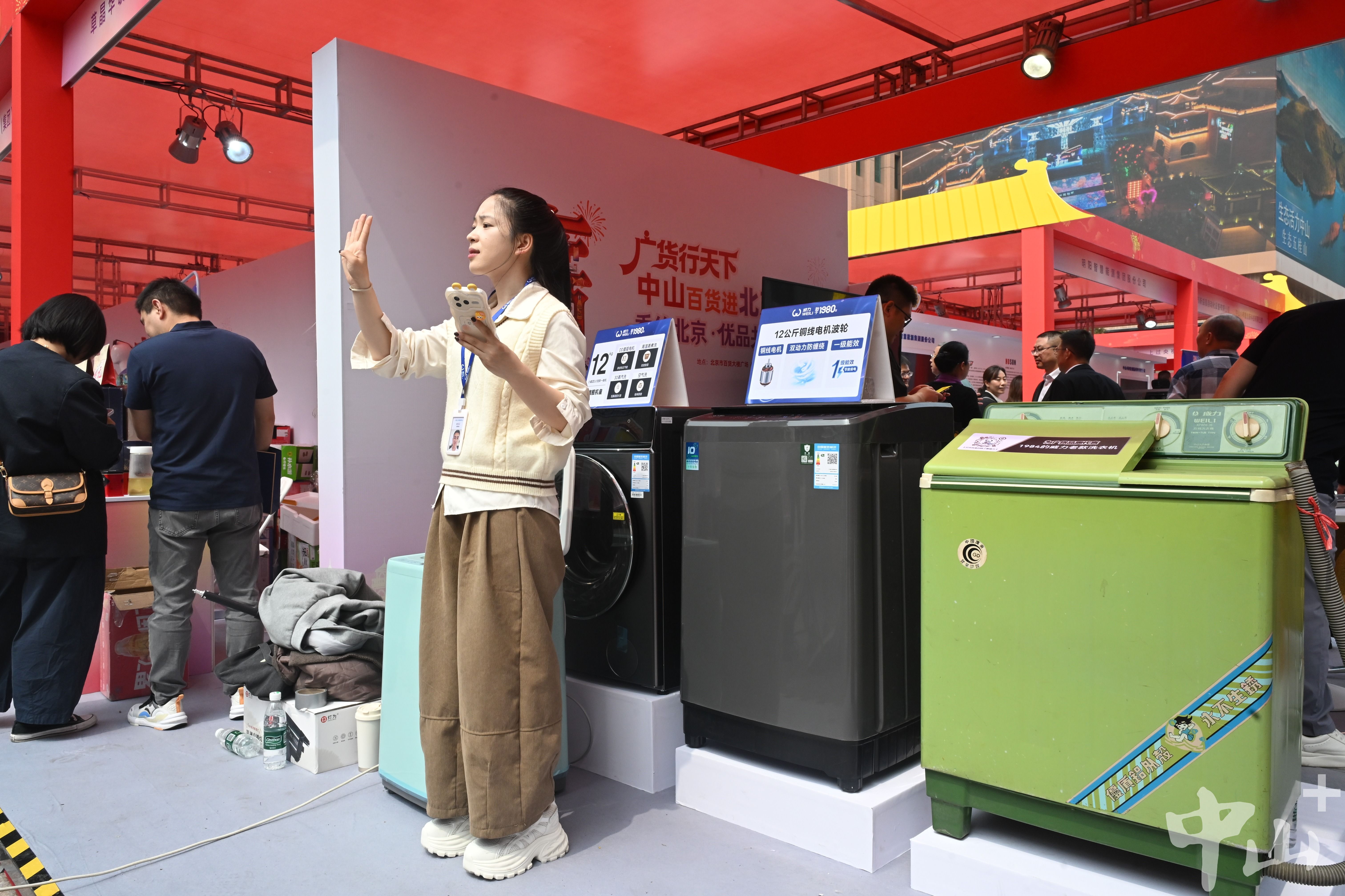“这台洗衣机质量也太扎实了!”活动现场,市民游客纷纷感叹。在有着46年发展积淀的中山本土龙头企业广东威力电器展位上,一台1987年出厂的老款双缸洗衣机格外醒目。机身虽历经岁月,却依旧运转正常、功能完好,直观展现出纯铜线电机的超长寿命与可靠品质。