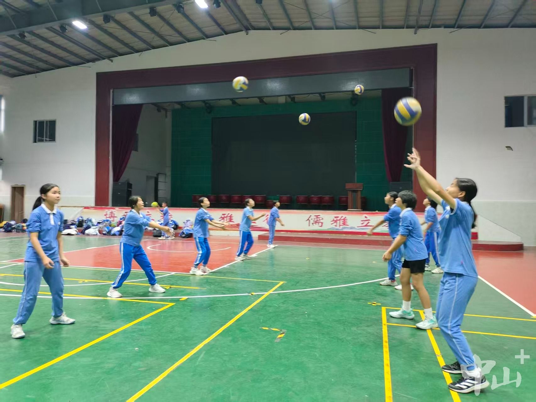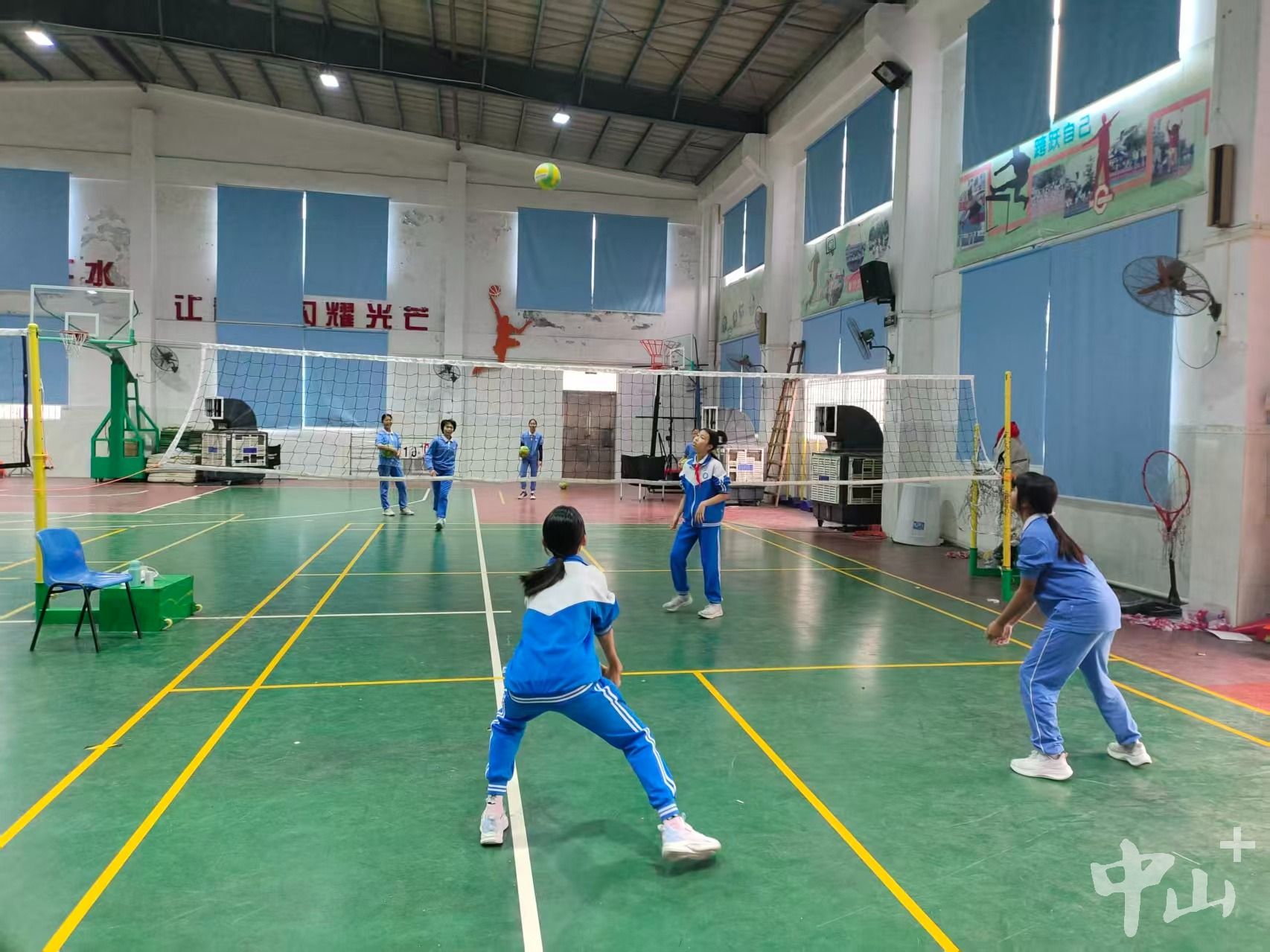 但团队的力量总能点燃坚持的勇气。梁钰婷扣球动作不标准,赵梓彤就主动陪着她,对着墙壁反复练习,纠正手部发力姿势;曾雅骏战术意识薄弱,大家利用休息时间,围着教练一起看比赛录像复盘,标注每一个失误点。“我们有个默契暗号,发球时喊一声‘好球’,既迷惑对手,也给队友打气。”梁幸旋笑着说。冯嘉镇则深谙“劳逸结合”之道,训练间隙组织“垫球接力赛”,赢了的队伍奖励零食饮料,让枯燥的训练多了欢声笑语。
