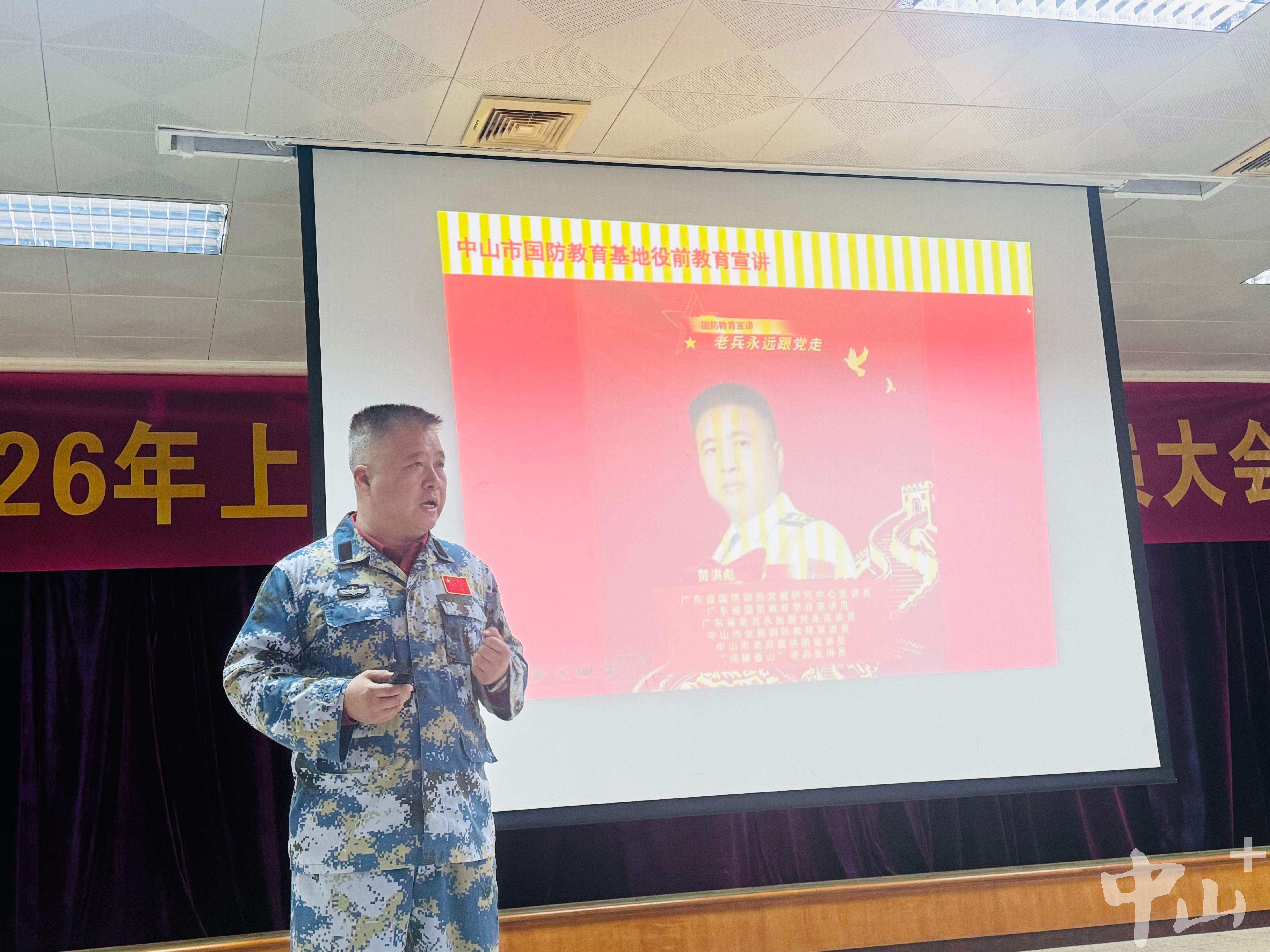 为帮助新兵尽早适应军旅生活,近日,中山市征兵办开展“红色教育”进军营活动,活动特邀曾在海军南海舰队南沙守备部队服役27年的退伍老兵贺洪彪,为即将踏入军营的准新兵们开展红色教育宣讲,教育引导准新兵们进一步坚定“为什么当兵、为谁当兵、怎么当兵”的理想信念,尽快实现由一名社会青年到合格军人的转变。