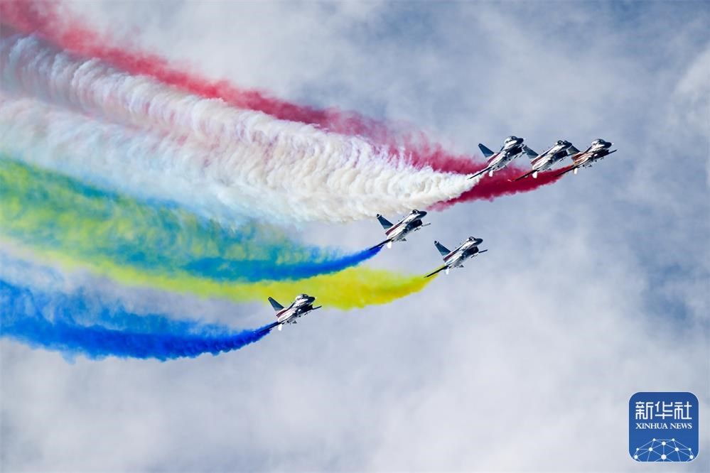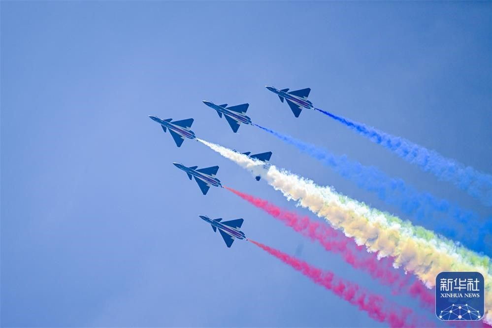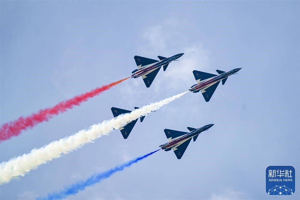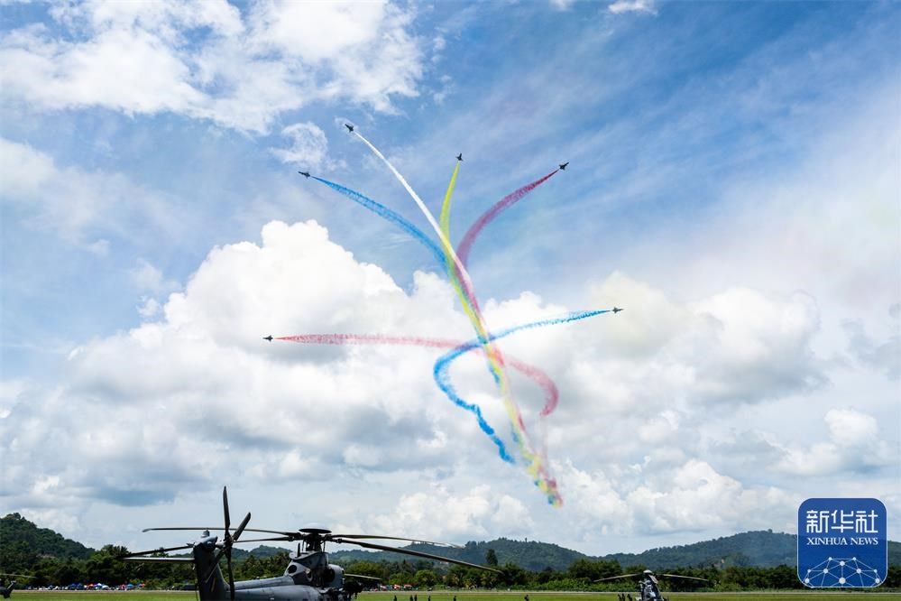 5月25日,中国空军八一飞行表演队在马来西亚兰卡威进行飞行表演。新华社记者朱炜摄