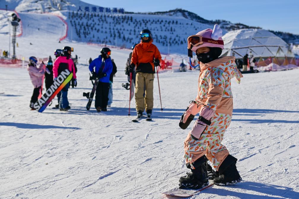 在新疆阿勒泰将军山国际滑雪度假区,一名小朋友在练习滑雪。新华社记者 丁磊 摄