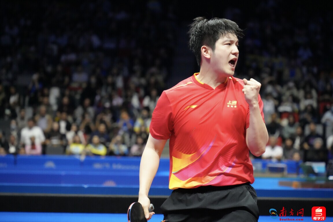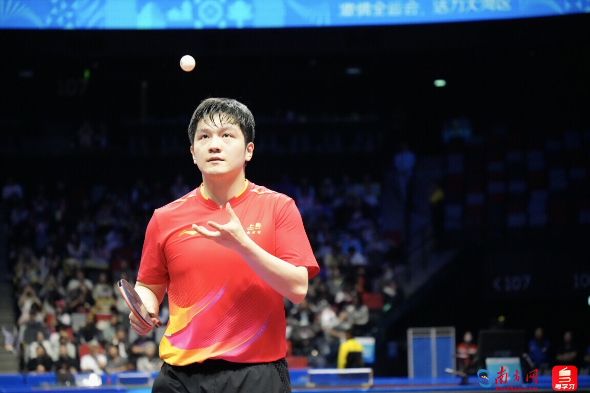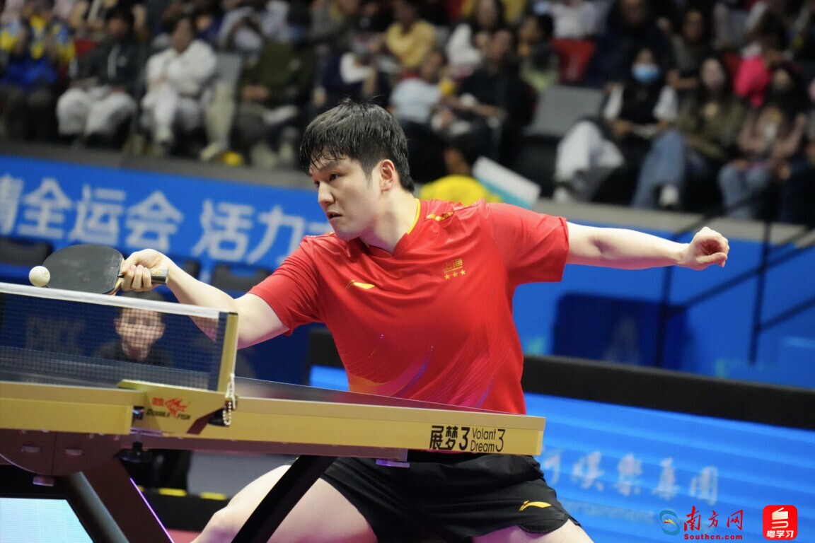 11月16日,在澳门进行的第十五届全运会乒乓球项目成年组男单决赛中,奥运冠军、上海队选手樊振东以总比分4-1战胜海南队选手林诗栋,成功卫冕全运会男单冠军!