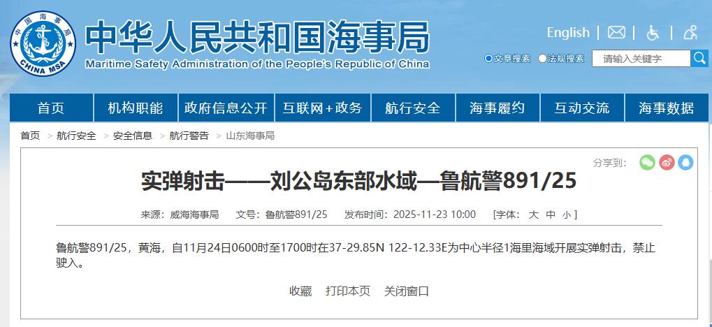航行警告!刘公岛东部水域将开展实弹射击