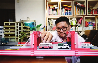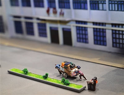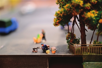 区叔叔做这些微缩模型的念头,是从2019年开始的。那年,在北京,一声公交车喇叭响,突然勾起了他儿时的记忆——那是中山凤鸣路,他常常目送母亲坐的公交车离开,直到车消失在街角。这让他觉得,自己曾经收藏的那些精美汽车模型,虽然好看,但总像是缺了点什么。“没有街道,没有场景,它们就没有了根。”区叔叔这么想着。