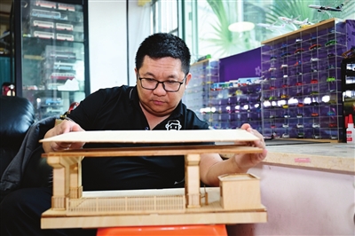 凭借着这股“较真”劲头和伙伴间的紧密合作,区叔叔和朋友先后完成了岐江酒家、富华酒店、岐江桥、华侨大厦、旧富华车站等五个中山老地标的微缩模型制作。